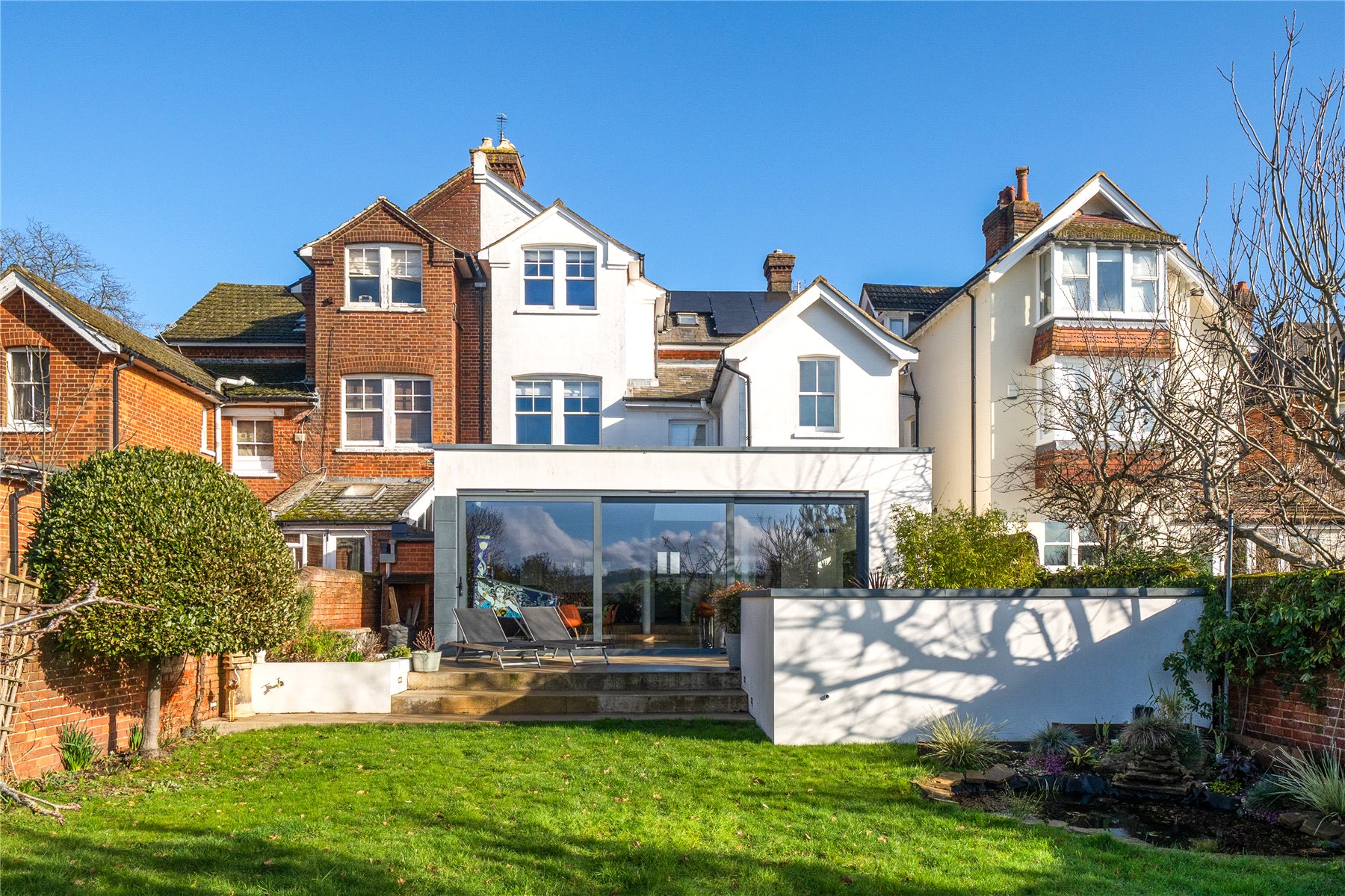 The result is a home of rare quality and confidence: a striking fusion of Victorian charm and modern architectural flair, offering generous, flexible accommodation in one of Guildford's most sought-after residential locations, with green open space, town amenities and excellent rail connections all close at hand.