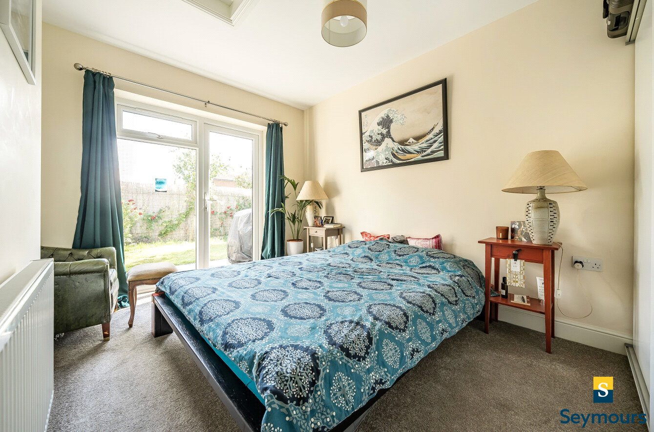 The garden is fully enclosed and thoughtfully landscaped with a combination of lawn, patio, and decorative slate beds, creating a low-maintenance outdoor retreat ideal for relaxing or entertaining. A rear gate provides convenient external access, and the garden setting enhances the overall appeal of the property.Inside, the apartment offers well-proportioned and inviting accommodation. A highlight of the home is the kitchen and dining room, which features a bay window that brings in abundant natural light and adds a sense of openness. It is well-equipped with contemporary cabinetry, integrated appliances, and wood-style flooring, offering both practicality and charm for everyday living.The living room sits to the front of the property and provides a comfortable and spacious area for relaxing or entertaining, with large windows overlooking the street. There are two bedrooms, including a well-sized principal bedroom with French doors that open directly onto the garden, creating a seamless flow to the outside. The second bedroom is ideal as a guest room, nursery or home office. A centrally located bathroom with a full suite, including a bath and overhead shower, completes the accommodation.