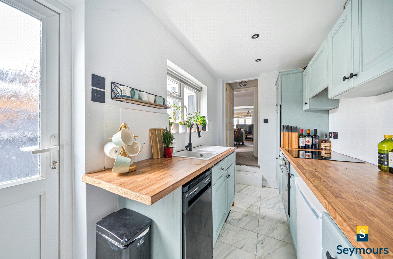 This charming home offers a warm and inviting layout that flows beautifully from the moment you step inside. The living room has a calm and contemporary feel, with soft decor, a feature fireplace and generous natural light from the front window. It opens through to the dining room, creating a sociable and flexible space that works well for both daily living and entertaining. The dining room itself feels bright and thoughtfully arranged, with fitted shelving adding character and practical storage, and an outlook to the rear that draws light in. From here the kitchen sits just beyond, recently refreshed with attractive cabinets, wooden worktops and a clean modern finish. It provides plenty of workspace along with views over the garden, and leads on to the modern bathroom which has been newly fitted to a high standard. The bathroom combines classic style with contemporary details, featuring a clawfoot tub with shower, stylish tiling and sleek black fittings that give the room a boutique feel.