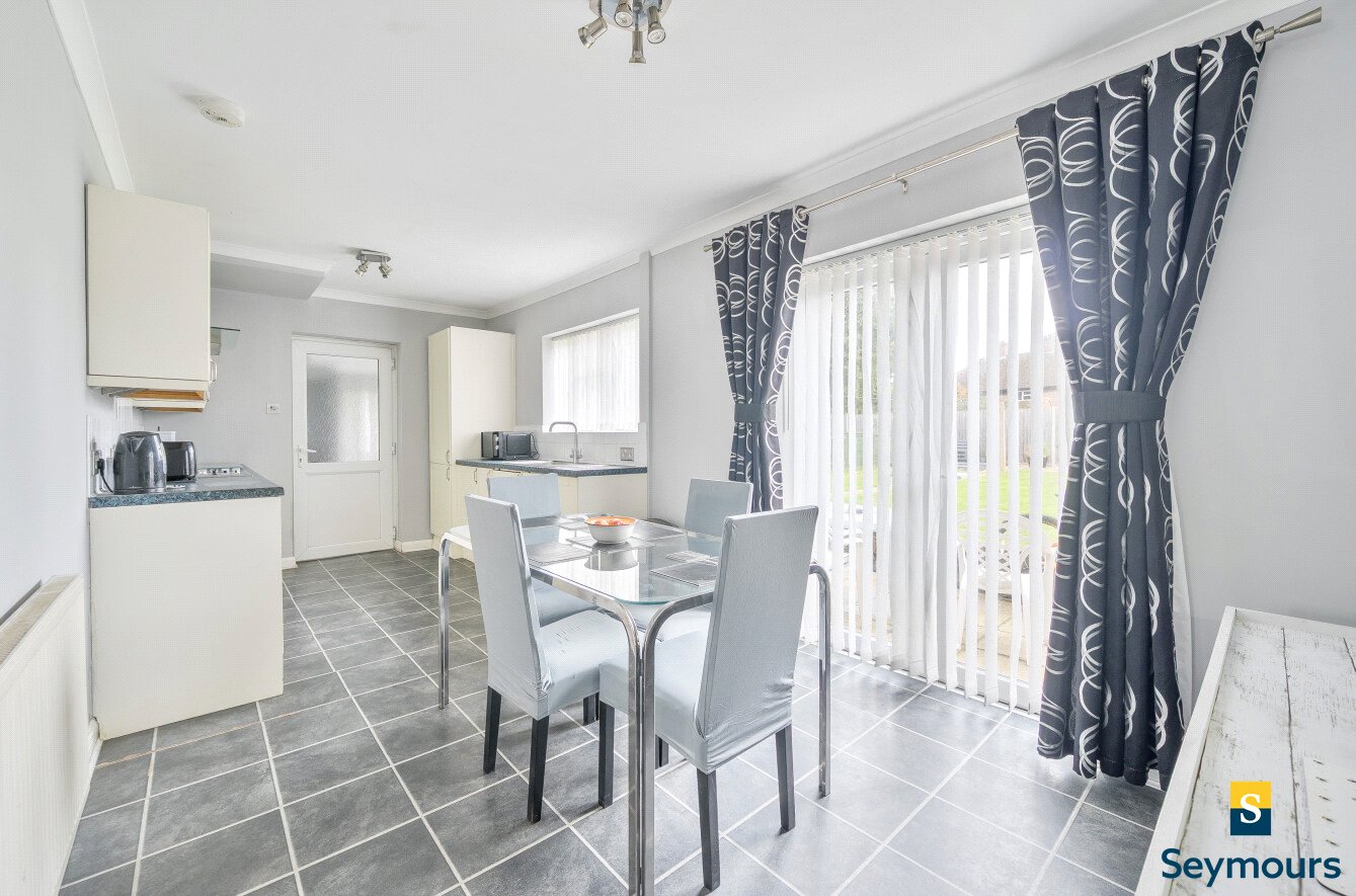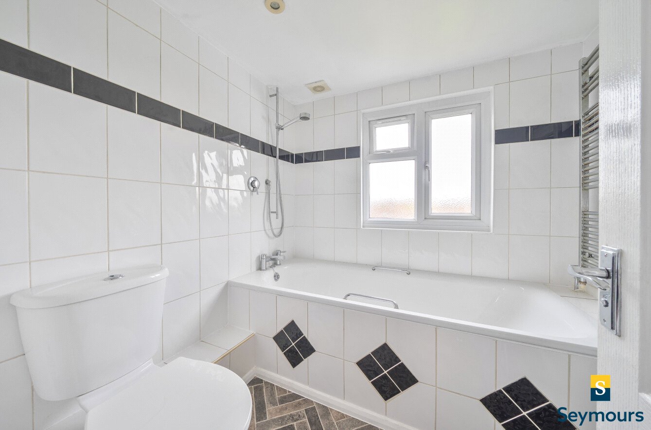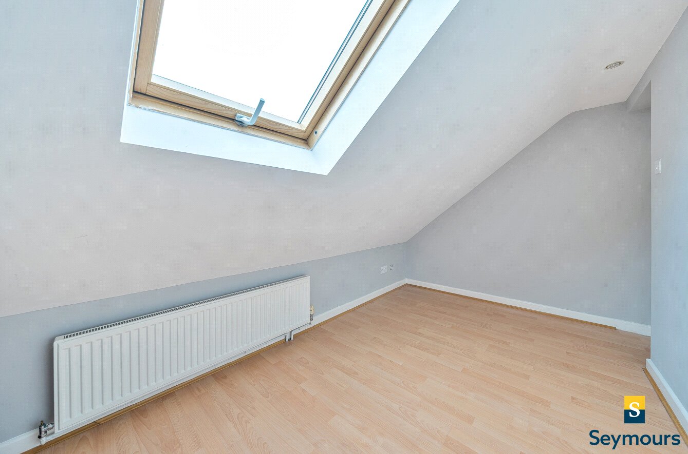 The first floor features three well-proportioned bedrooms, each decorated in neutral tones to create a light and airy feel. This floor also benefits from a shower room, fitted with a walk-in shower, and tiled walls, offering a practical space. The top floor provides two further bedrooms, including a particularly spacious double enhanced by a dormer window and a second bedroom featuring a skylight. A contemporary family bathroom serves this level, finished with a white suite, tiled walls, and a bath with shower over, adding convenience and comfort for family living or guests.Outside, the rear garden is a standout feature, extending to an impressive length and mainly laid to lawn, bordered by timber fencing for privacy. A paved patio area adjoining the house offers a perfect spot for outdoor dining and relaxation, while a pathway leads to the end of the garden where additional seating or storage could be arranged. The property combines generous interior proportions with well-maintained outdoor space, making it a superb choice for growing families seeking comfort and convenience.