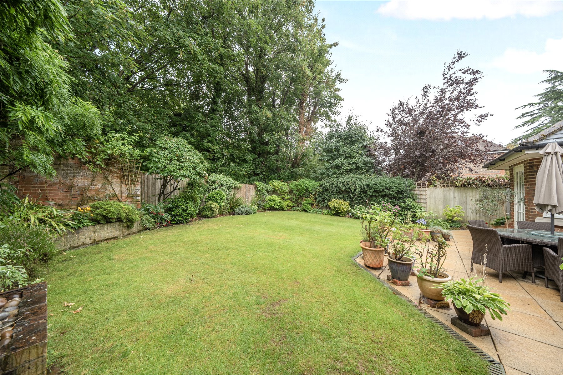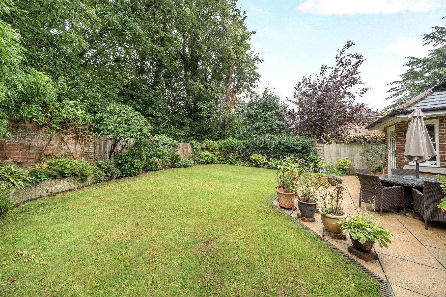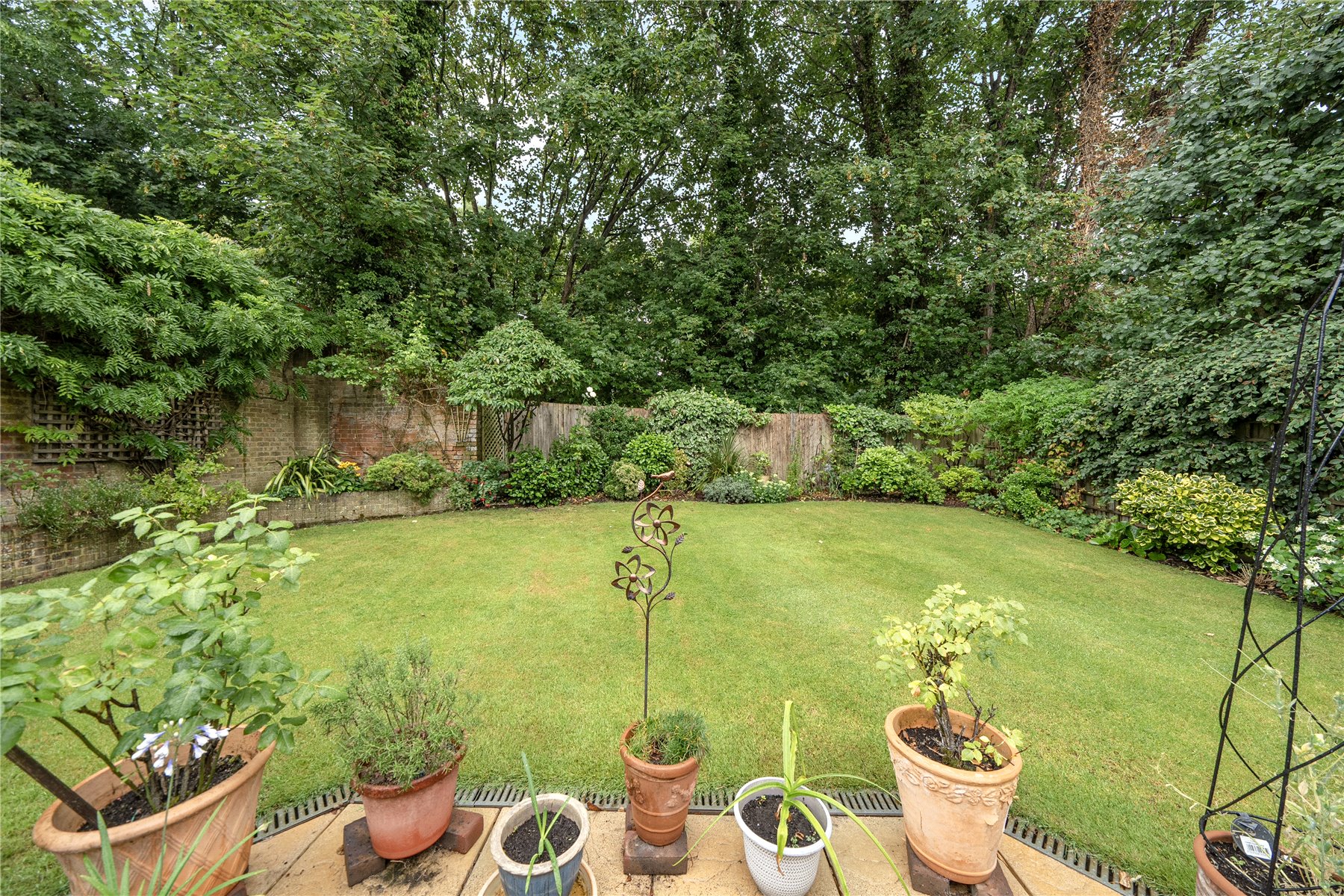 The garden offer a rare level of seclusion for such a central location. Mature trees and well-stocked borders create a tranquil and private outlook, while the generous lawn is complemented by a wide terrace, ideal for outdoor dining and summer gatherings.
