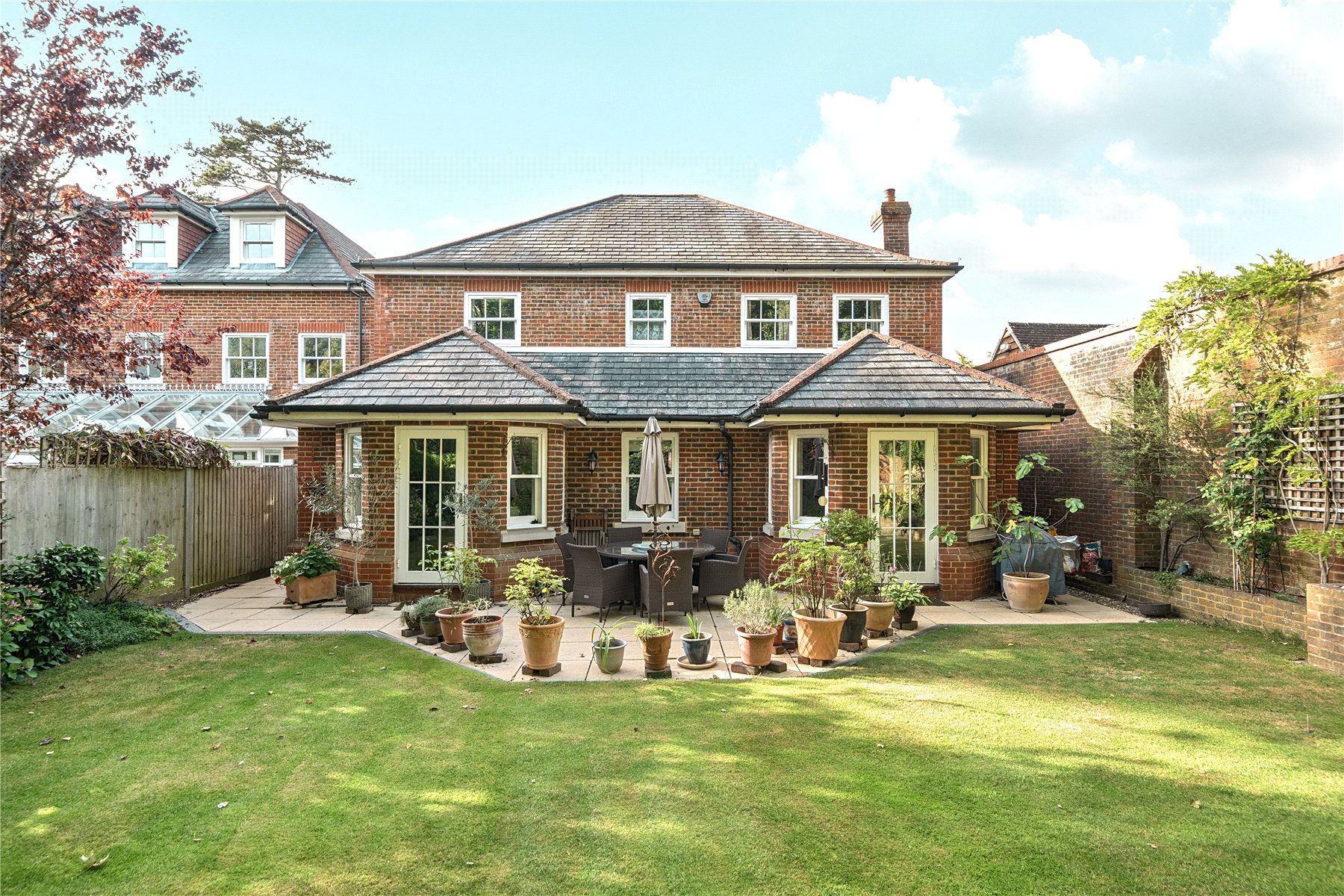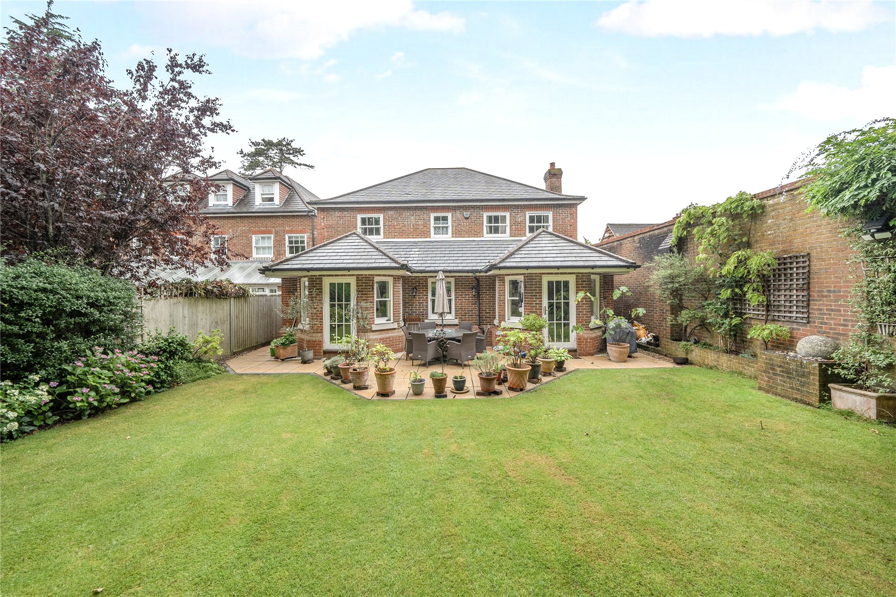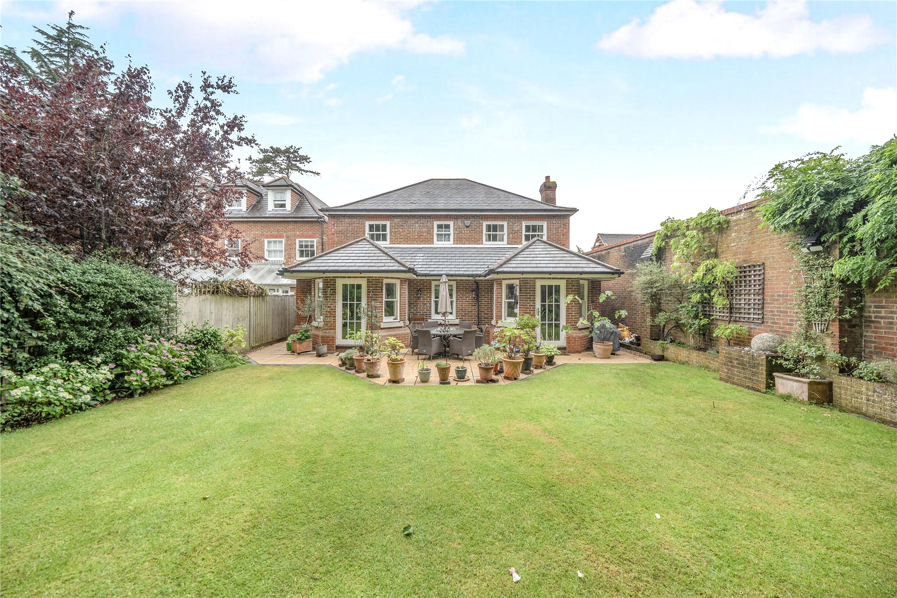 The garden offer a rare level of seclusion for such a central location. Mature trees and well-stocked borders create a tranquil and private outlook, while the generous lawn is complemented by a wide terrace, ideal for outdoor dining and summer gatherings.