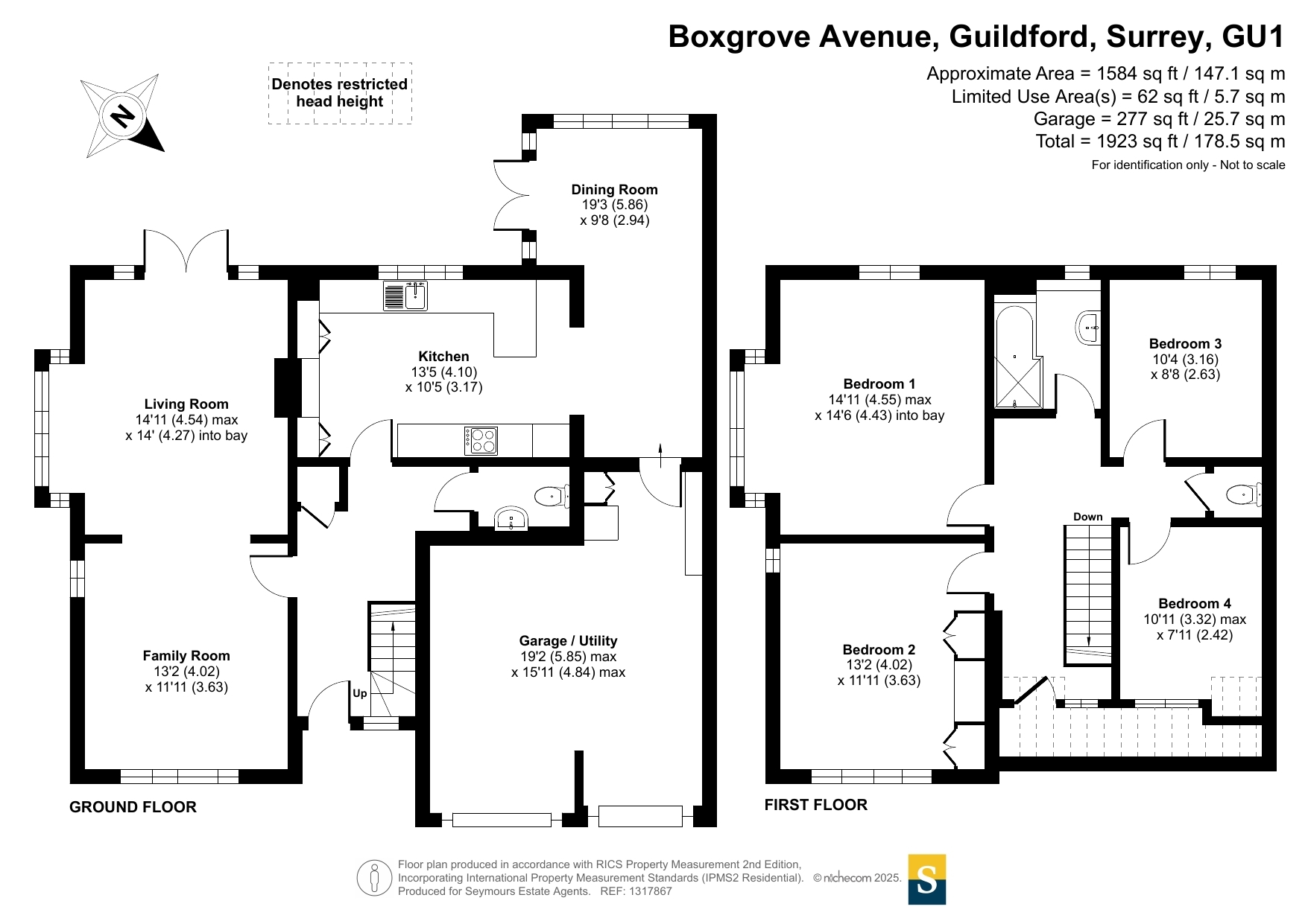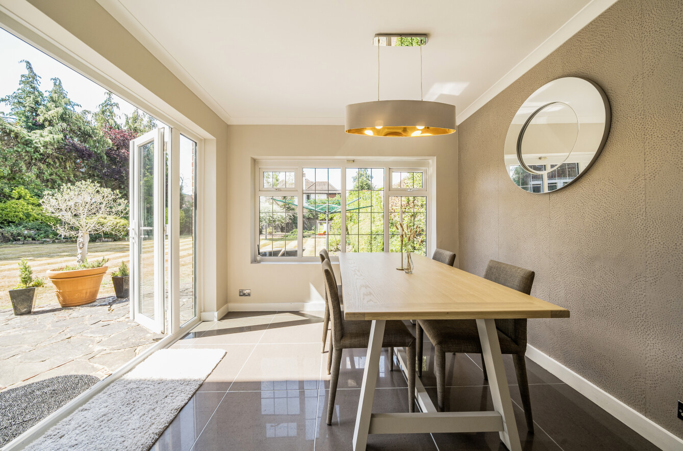 This is a beautifully positioned detached family home offering generous living space of approximately 1,879 sq ft, thoughtfully arranged over two floors. Set on a mature and private corner plot measuring around 0.22 acres, this property enjoys a desirable south-west facing garden and is located in a highly sought-after residential area of Guildford, within easy walking distance of excellent schools and Stoke Park.The property opens into an inviting entrance hall, where a cloakroom provides practical convenience for guests. From here, the layout flows seamlessly into the principal reception rooms. The sitting room enjoys a sense of openness and light, with a bay window and double doors connecting through to the formal dining room at the rear, which overlooks the garden perfect for entertaining or relaxing with family. The kitchen is fitted with modern cabinetry and opens into a bright breakfast area, which offers views and access to the garden, enhancing the sociable and functional heart of the home.The first floor comprises four bedrooms, all generously proportioned and flooded with natural light. Bedroom 1 benefits from a bay window and ample floor space, while the remaining three bedrooms are served by a family bathroom and a separate WC, allowing for flexible and practical living arrangements.The double garage, currently used as a gym and playroom, adds to the home's versatility and provides potential for further conversion or reconfiguration if required. There is also excellent scope for significant extension (subject to planning permission), with the corner plot affording ample space to the side and rear for expanding the living accommodation. The current owners have drawn up plans and elevations to illustrate how the house could be enlarged, although formal planning consent has not yet been obtained.The garden is a real highlight wide, sunny, and private offering a tranquil outdoor retreat that wraps around the house. The south-west aspect ensures excellent natural light throughout the day and creates a perfect setting for al fresco dining, gardening, or children's play.This exceptional freehold home combines location, layout, and potential in equal measure, making it a fantastic opportunity for growing families or those looking to create a long-term home in one of Guildford's premier residential avenues.