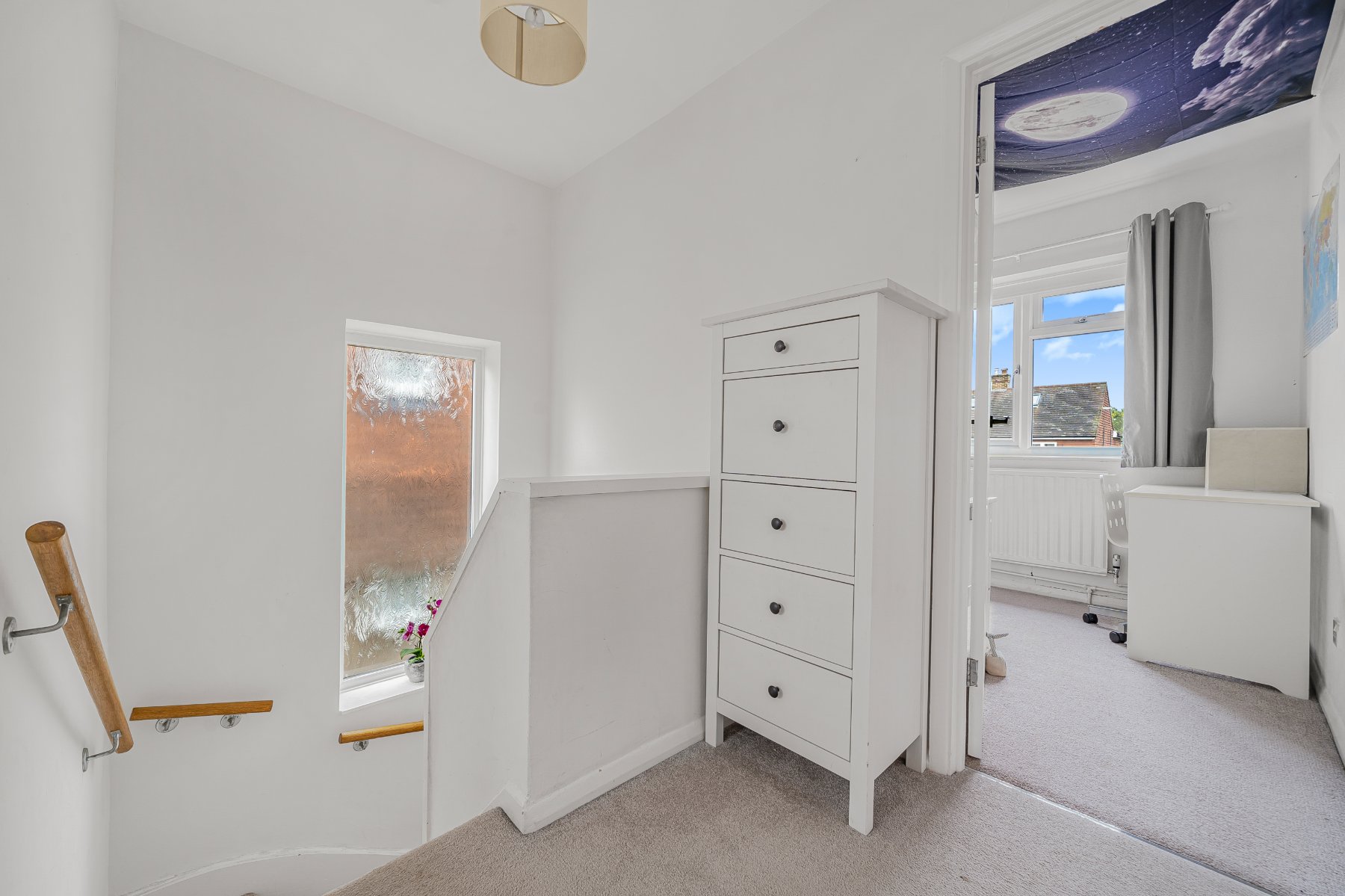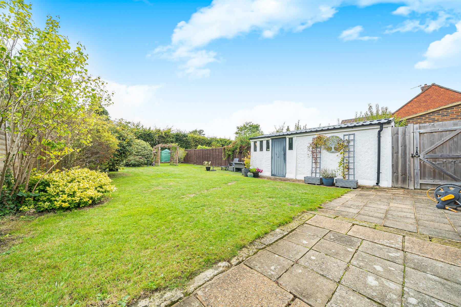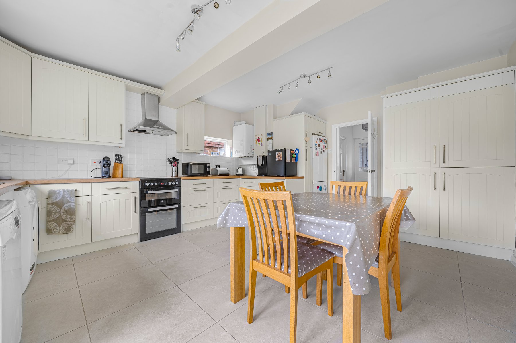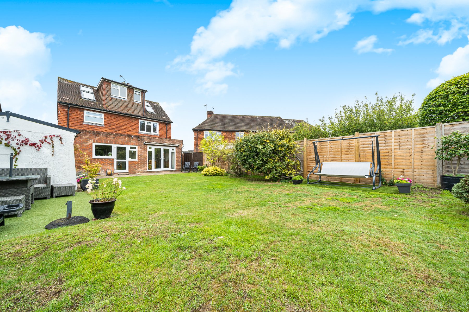 This attractive detached house in Burpham is ideally located close to highly regarded local schools and excellent amenities, making it perfect for family living. The property is beautifully presented throughout with tasteful décor and a thoughtful layout, offering both comfort and style. Benefitting from a garage, driveway parking, and a generous garden, it combines practical features with inviting living spaces.The ground floor provides a welcoming and versatile arrangement. The living room is a particularly striking space, with herringbone wood flooring and a modern fireplace as its focal point. The dining room, finished with soft grey carpets, is bright and inviting, with double glass doors opening directly onto the garden. The kitchen is well-appointed with cream shaker-style cabinets, warm wood countertops, and large tiled flooring, giving it a timeless yet contemporary feel. With ample storage, space for a dining table, and a glass door to the garden, it is both functional and sociable. A convenient WC completes this floor.Upstairs, the principal bedroom is generously sized and enjoys dual-aspect windows, flooding the room with natural light. The further bedrooms on this level are equally well presented, each offering a calm and comfortable retreat. The family bathroom is smartly styled with taupe cabinetry, white fixtures, and chic white brick-style wall tiles, creating a modern yet practical space.The top floor provides two additional bedrooms, both featuring charming slanted ceilings that add character. A shower room on this floor continues the home's stylish design, mirroring the finish of the main bathroom.Outside, the rear garden is expansive and thoughtfully landscaped. Mature hedges and shrubs border the lawn, with fencing providing both structure and privacy. A neat patio area offers the perfect spot for outdoor dining or entertaining, while a garden shed provides useful additional storage.