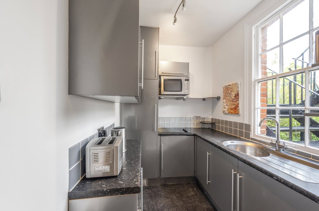 Set well back from the road the property is quiet with lovely gardens to both back and front. Every room, including the corridor has a garden view and is filled with light from large sash windows making for sedate and comfortable Town Centre living.