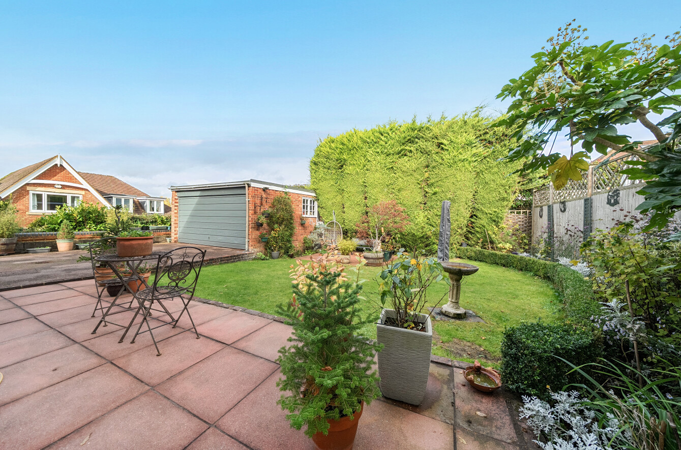 This attractive Neo-Georgian style home sits proudly in the highly sought-after Ferndown Close in Guildford, a peaceful and well-established cul-de-sac that epitomises the calm and secure feel of one of the town's premium residential locations. With elegant symmetry, double glazed windows and a welcoming central entrance, the property has all the charm of classic architecture while offering excellent scope for a modern family lifestyle. The house enjoys a generous frontage with a large private driveway providing ample parking and leading to a detached garage, ideal for vehicles, storage, or future conversion. The interior offers a traditional layout with a spacious reception room and well-proportioned bedrooms, the principal with ensuite shower room, making it comfortable and practical as it stands, but there is huge potential to update or reconfigure. Importantly, the property has planning permission for for an extension, creating an exciting opportunity to enlarge the footprint and design a substantial forever home tailored to individual needs: PP14269796; erection of part single, part two storey front, side and rear extensions to include the creation of integrated garage and chimney stack to roof together with changes to fenestration.