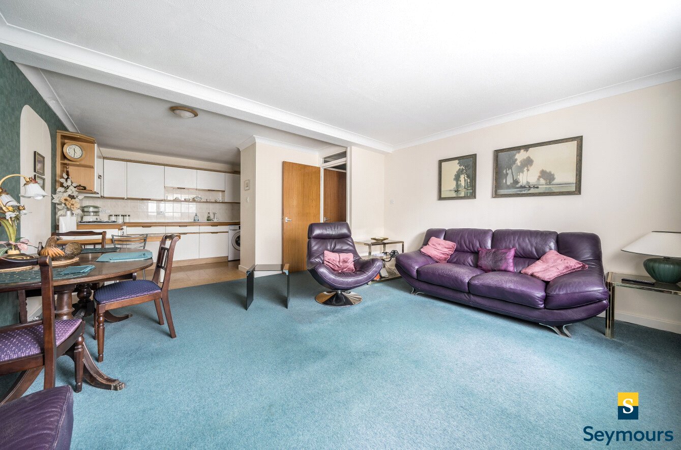 The accommodation comprises a welcoming entrance hall leading to a bright living and dining room, where large windows provide plenty of natural light and views over the communal gardens. The adjoining kitchen is fitted with a range of units and work surfaces, offering a practical and well-planned space for day-to-day use. A new boiler has recently been fitted.