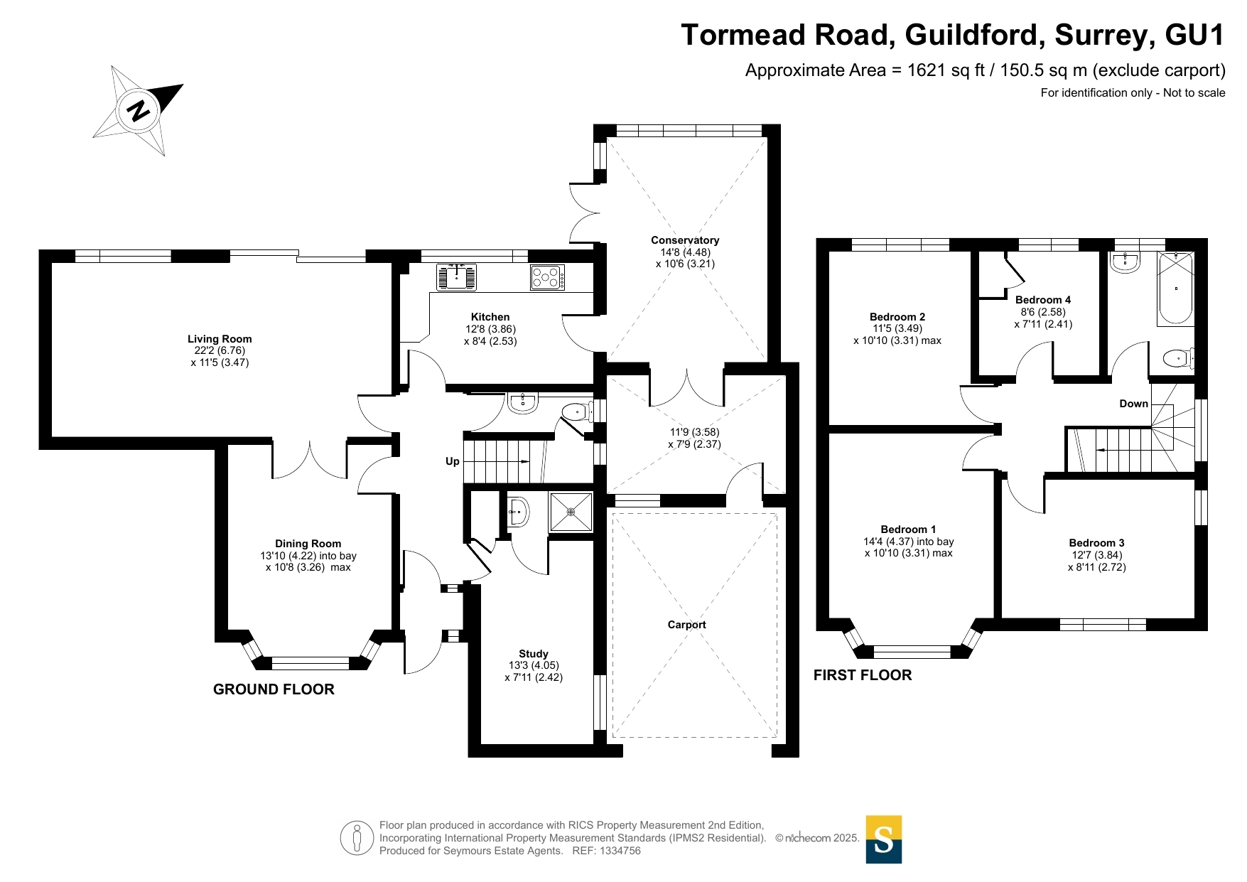 Set on the sought-after Tormead Road in Guildford, this attractive detached family home offers a generous 1,621 sq ft of accommodation and sits on an impressive 0.2-acre plot. The property combines a practical layout with light-filled rooms, offering an ideal blend of living, working, and entertaining spaces.The ground floor centres around a welcoming hallway, which connects the main reception areas. At the front, the dining room features a bay window, creating a bright and inviting space for family meals or dinner parties. The spacious living room, stretching over 22 feet, enjoys a dual aspect and doors opening to the garden, allowing the outdoors to feel part of the home. The kitchen is neatly arranged with direct access to a conservatory that overlooks the rear garden, offering a perfect spot for relaxed morning coffee or informal gatherings. Completing the downstairs is a study, ideal for home working, and a cloakroom for convenience.Upstairs, the home provides four well-proportioned bedrooms. The principal bedroom benefits from a bay window and generous floor space, while the remaining three bedrooms offer flexibility for family, guests, or additional office use. A family bathroom serves the first floor.Externally, the house sits back from the road behind a large gravel driveway, providing ample off-street parking, alongside a carport. The rear garden is a standout feature, stretching back with a wide lawn bordered by mature trees and shrubs, creating a private, green outlook. The size of the garden provides scope for landscaping, play areas, or even future extension (subject to permissions).With its substantial plot, excellent layout, and desirable location within reach of Guildford's amenities, schools, and transport links, this home offers both immediate comfort and exciting potential for the future.