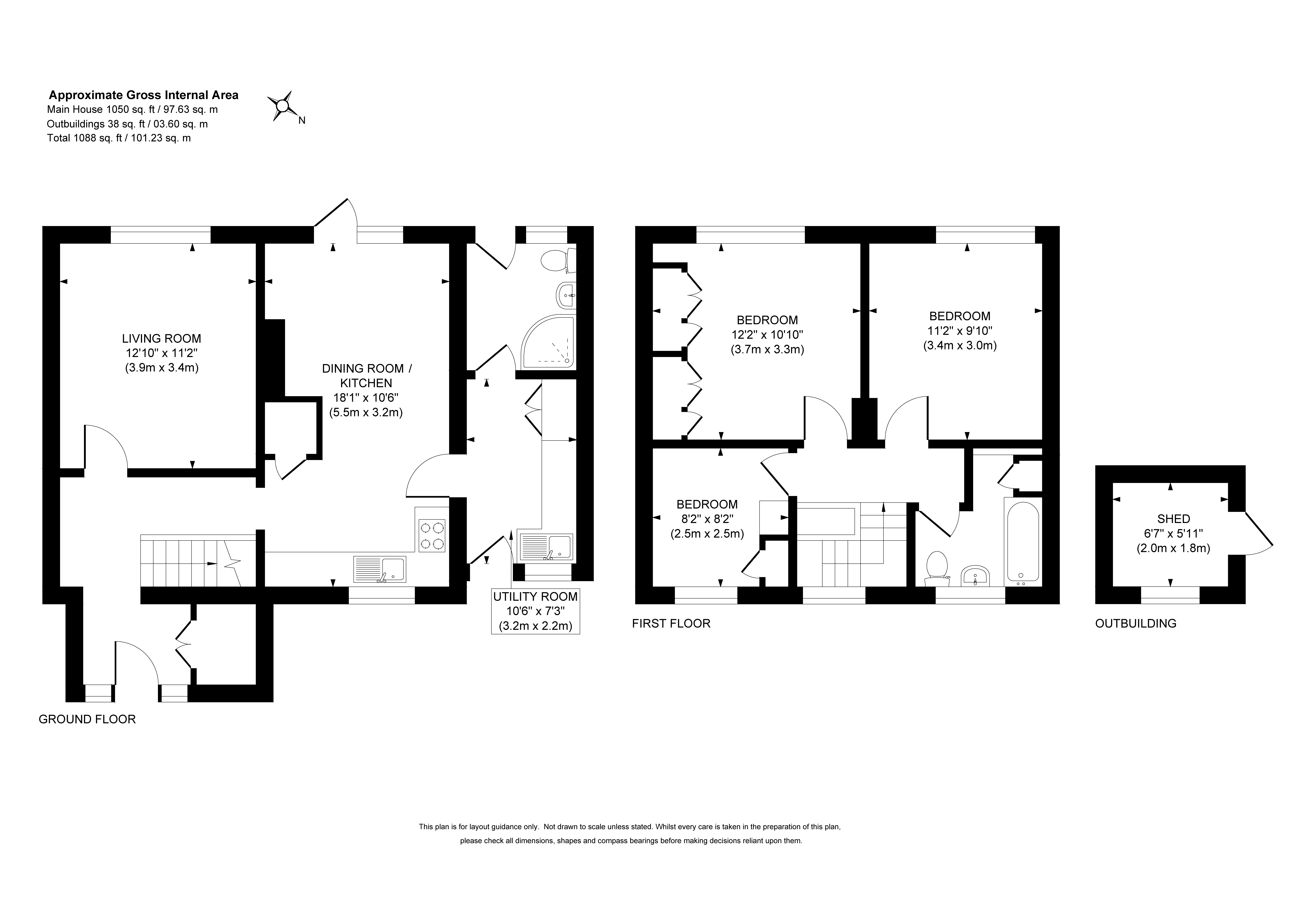 This attractive semi-detached home in Boxgrove offers excellent access to Guildford Town Centre and falls within the catchment area for several highly regarded local schools. The property has been thoughtfully extended and updated, creating a versatile family home that balances modern living with practical features.At the front, the house is approached via a large driveway, complemented by a neat lawn and well-kept hedges and shrubs beneath the windows. A recently added porch provides both a larger entrance space and useful storage. Stepping inside, the kitchen is fitted with stylish grey shaker-style cabinets and soft muted green walls, creating a calming and modern look. The adjoining dining room enjoys double glass doors that open out onto the garden, perfect for entertaining. The living room is bright and welcoming, with sliding glass doors to the garden, light beige walls, and easy-care laminate flooring. A side extension provides a practical utility room, finished with cream shaker cabinets, and a downstairs bathroom with fresh white fittings and contemporary tiling.Upstairs, the principal bedroom is decorated in soft beige tones, with carpeted floors and plenty of room for wardrobes. The second bedroom is generously sized, finished with pastel green walls and beige carpets, while the third bedroom offers pale blue walls and built-in storage above the stairs, making it an ideal nursery or home office.The rear garden is well landscaped and designed for both relaxation and practicality. A smart patio area provides the perfect spot for outdoor dining, leading onto a well-kept lawn bordered by planting beds. A path extends to a garden shed at the rear, with the whole space enclosed by grey fencing for privacy.