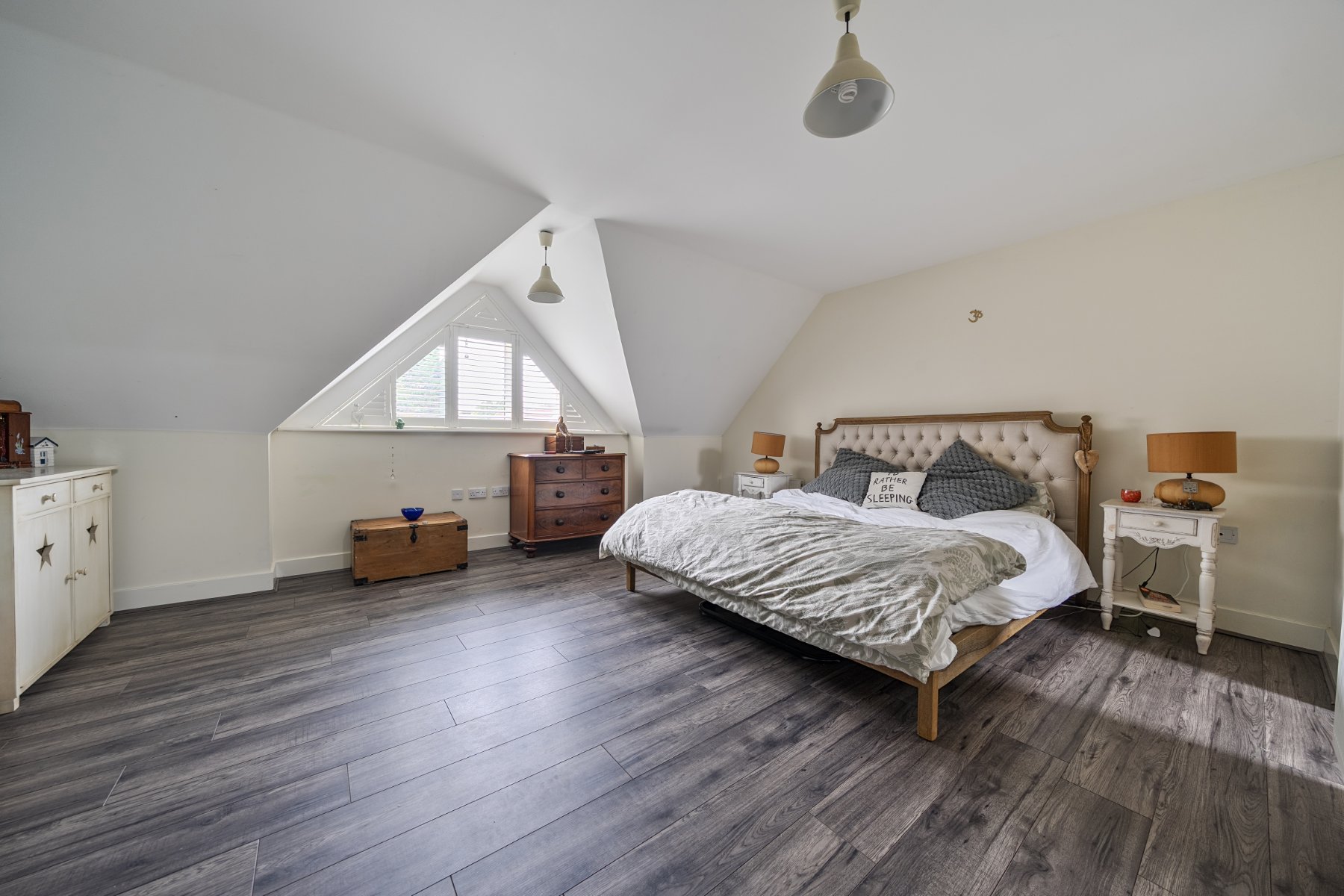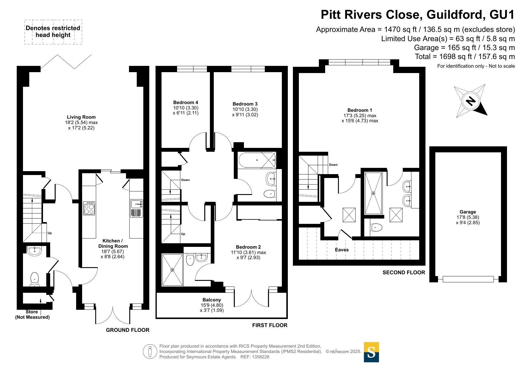 This attractive end of terrace home is beautifully presented throughout and offers a modern lifestyle with the added benefit of a garage and private parking. Designed with contemporary living in mind, it combines stylish interiors with practical spaces, making it a superb choice for families or professionals alike. It boasts ease of access the nearby Merrow Downs, and has excellent links to Guildford Town Centre.The ground floor is thoughtfully arranged to provide both comfort and functionality. At the heart of the home is the kitchen and dining area, finished with elegant dark wood cupboards paired with contrasting cream countertops and matching overhead units. The spacious living room, laid with wood-effect flooring, is a welcoming area for relaxation and entertaining. Its bi-fold doors span the rear wall, opening seamlessly onto the garden and filling the room with natural light. A convenient WC and a practical store complete this level.Upstairs, the first floor hosts three well-designed bedrooms, all continuing the neutral colour palette and dark wood-effect flooring for a cohesive style. Bedroom two is a standout, offering its own en-suite and a private balcony that enjoys views towards the Merrow Downs. The family bathroom is bright and tastefully fitted, with neutral tiles and a large wall mirror that enhances the sense of space and light.The second floor is dedicated to the impressive principal bedroom. This expansive space features characterful slanted ceilings and is finished to the same high standard as the rest of the home. It boasts a luxurious en-suite with a walk-in shower and double sinks, creating a private retreat.Outside, the garden provides an inviting and private space to enjoy. Enclosed by high walls and fencing, it offers both security and seclusion. A smart patio is ideal for outdoor dining and entertaining, while a neat lawn area adds a green and tranquil touch. With its modern finishes, well-planned layout, and excellent location, this home offers both style and practicality.