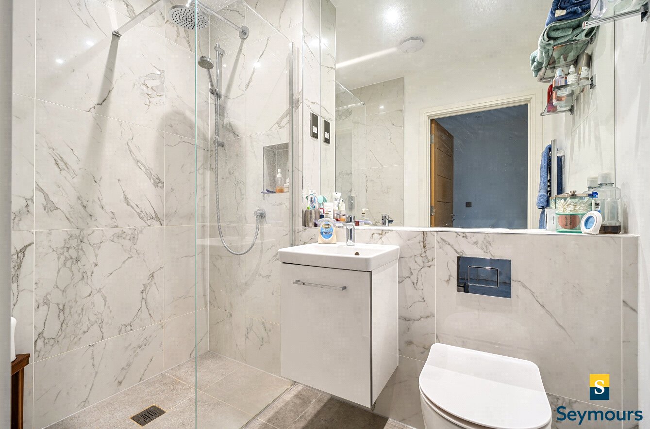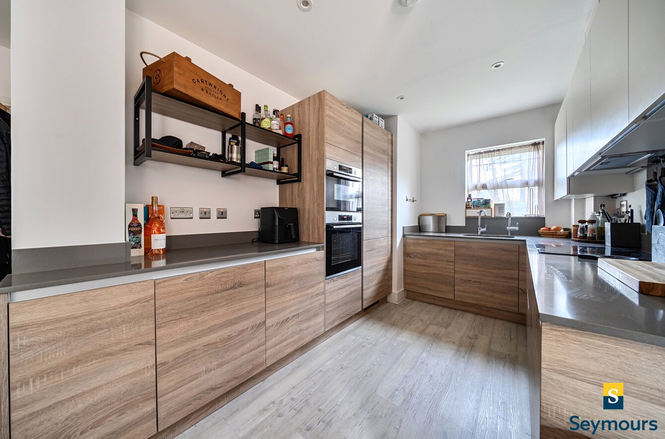 A welcoming entrance hallway with built-in storage leads through to a bright, open plan living and kitchen area enjoying a dual aspect and direct access to the rear outdoor space. The kitchen is finished to a high specification with sleek cabinetry, stylish worktops and a comprehensive range of integrated Bosch appliances, complemented by luxury vinyl flooring and subtle under-cupboard lighting that enhances the modern design.Both bedrooms are generous doubles featuring built-in wardrobes, with the principal bedroom benefiting from its own en-suite shower room, while the second bedroom is served by a separate contemporary shower room fitted with quality sanitaryware and refined finishes. Underfloor heating runs throughout the apartment, and the property further benefits from an allocated parking space complete with a dedicated electric vehicle charging point, installed at the cost of the current leaseholder. The charging point is individually metered through the port and billed centrally to the Welland House Management Company on a quarterly arrears basis.