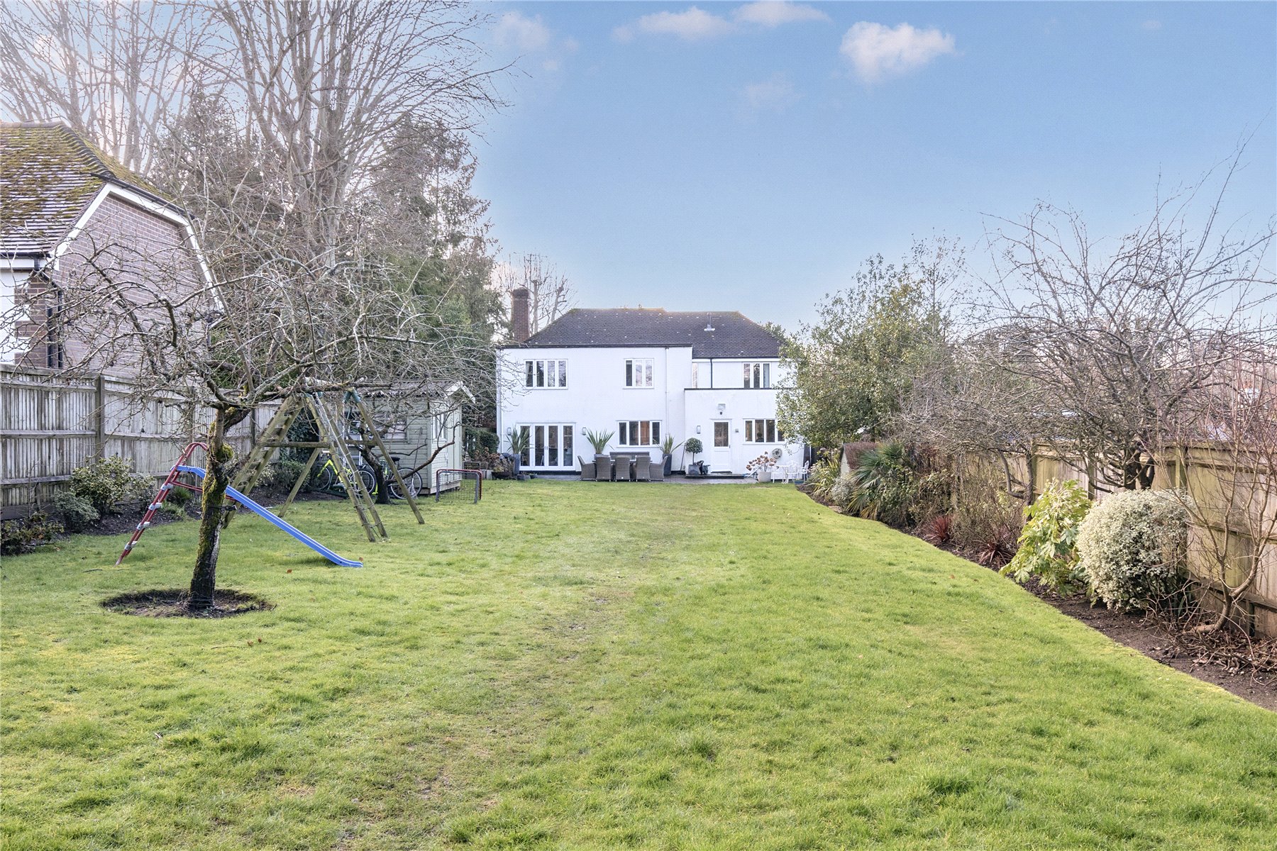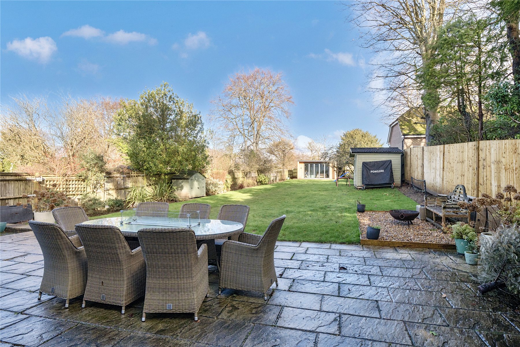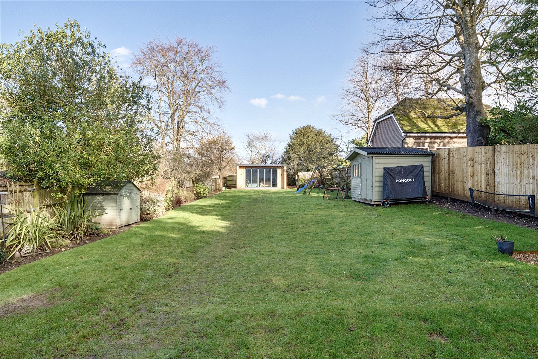 The exterior of Fairlawn is equally impressive, occupying a generous plot of approximately 0.24 of an acre. To the front, a substantial block-paved driveway provides parking for several vehicles, setting a smart and practical first impression. Side access on both sides of the property leads through to the rear, where a spacious patio creates an ideal space for outdoor dining and entertaining, opening onto a garden that is predominantly laid to lawn. Since purchasing the property, the current owners have introduced a striking bespoke garden cabin, fully wired and thoughtfully designed to offer excellent flexibility as a home office, studio or gym, with the added potential for future plumbing. A decked seating area complements the cabin beautifully, providing a relaxed spot to enjoy the garden. At the far end of the plot, a gated access leads directly onto the Downs, offering immediate enjoyment of countryside walks straight from the garden, without the need to get in the car.Overall, this is a fantastic family home that combines contemporary living with excellent flexibility for the future, ideally positioned for those wanting to enjoy the convenience of Guildford while remaining close to Merrow's local amenities and the area's highly regarded state and private schools.