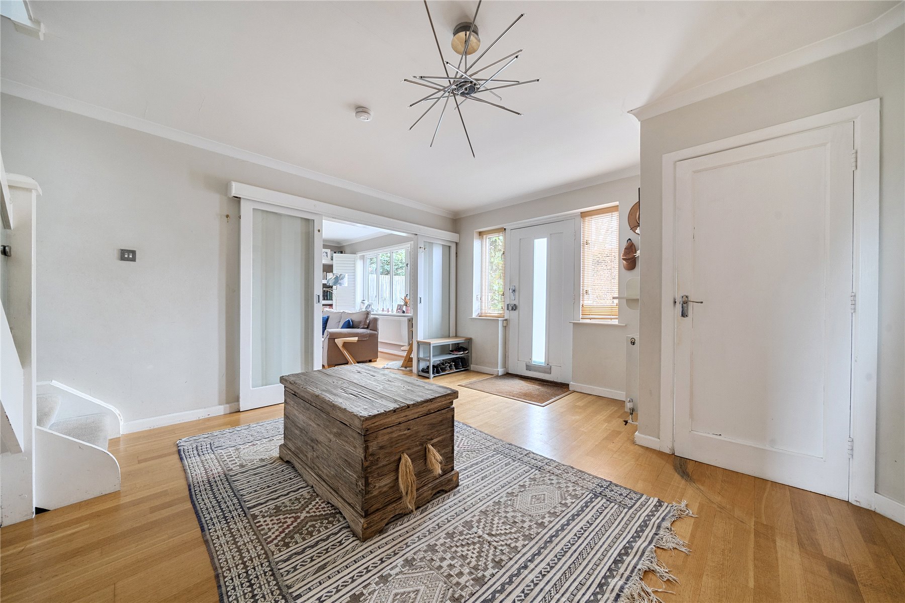 Fairlawn is an impressive home is beautifully presented in a contemporary style and offers exceptionally well-planned accommodation arranged over two floors. The moment you step through the front door into the spacious reception hallway, you are greeted by a wonderfully light and airy feel, with attractive wooden flooring extending throughout the ground floor. From the hallway there is a cloakroom fitted with a low-level WC and hand basin, along with a useful storage cupboard for coats and everyday essentials.The double aspect sitting room is a superb space, stretching from the front to the rear of the property, featuring a modern gas fireplace as a focal point and double doors opening directly onto the rear garden, creating a seamless flow for both family life and entertaining. To the rear, the family room enjoys pleasant views over the garden and connects neatly through to the kitchen, making it ideal for relaxed day-to-day living.The kitchen/breakfast room is very much the heart of the home, offering a spectacular open-plan layout with impressive proportions running from front to back. There is ample space for a dining table as well as a comfortable seating area, as the current owners enjoy, making it a truly sociable and versatile room. The kitchen itself provides an excellent range of units in a stylish mix of white and stainless steel, complemented by solid beech worktops, while the central island adds further preparation space along with an additional sink. Integrated appliances include a washer/dryer and dishwasher, and the room is filled with natural light thanks to dual aspect windows and a skylight overhead.Upstairs, the staircase leads to a landing with access to five generous double bedrooms and the family bathroom. The principal bedroom enjoys a rear aspect position and benefits from generous storage. Bed 2 also faces over the garden and benefits from an ensuite shower. The remaining bedrooms are all well-proportioned doubles, three rooms featuring useful fitted wardrobes. The family bathroom continues the home's contemporary theme.Additionally, there is existing planning permission in place for those wishing to extend and further enhance the property over time, under reference 23/P/01176, for the construction of a part single and part two storey rear extension.
