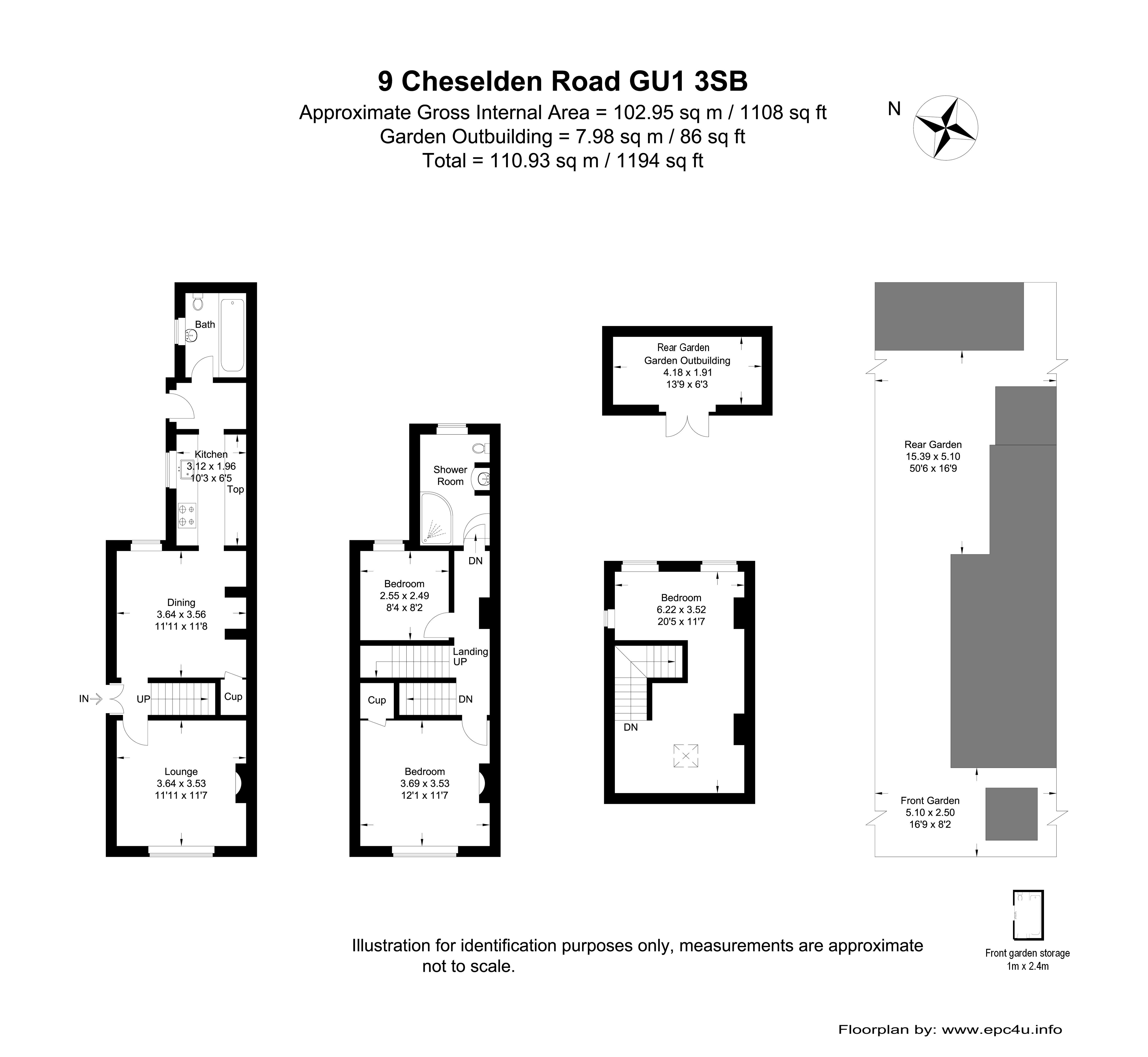 - Private rear garden with outbuilding