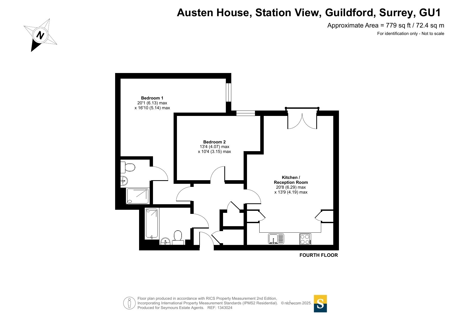 An immaculately-presented two double bedroom, two bathroom apartment with lift access, situated on the fourth floor of this modern development in the heart of Guildford town centre. The property offers a spacious open-plan kitchen and reception room, designed with contemporary finishes and opening out onto a private balcony that enjoys elevated views across the town.