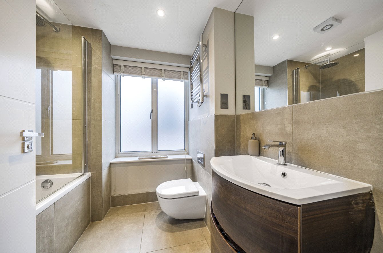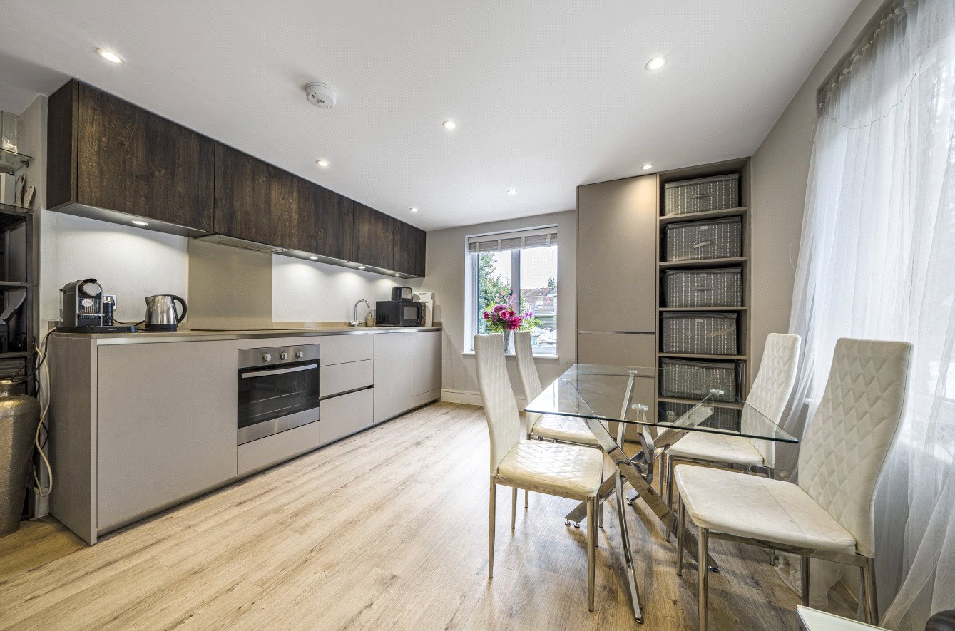 A private front door leads to a larger than average entrance hall, the open plan reception/kitchen has three windows making this a well-lit space with natural light, there is ample room for soft furnishing as well as a dining table and chairs. The fitted kitchen is sleek and modern with integrated appliances including fridge freezer, dishwasher and washer/dryer. The main bedroom has built in wardrobes, as does bedroom two and a stunning family bathroom serving both rooms.