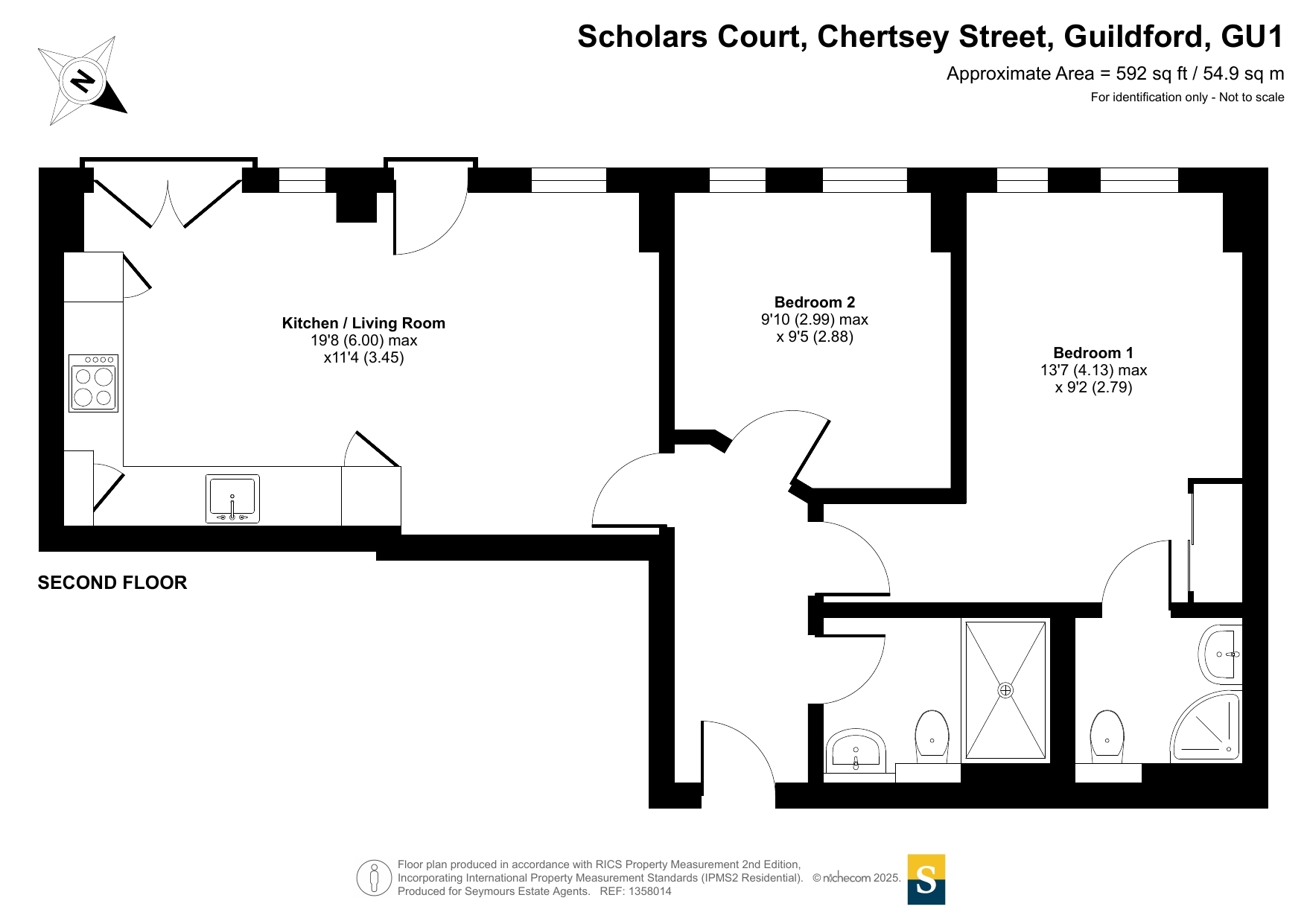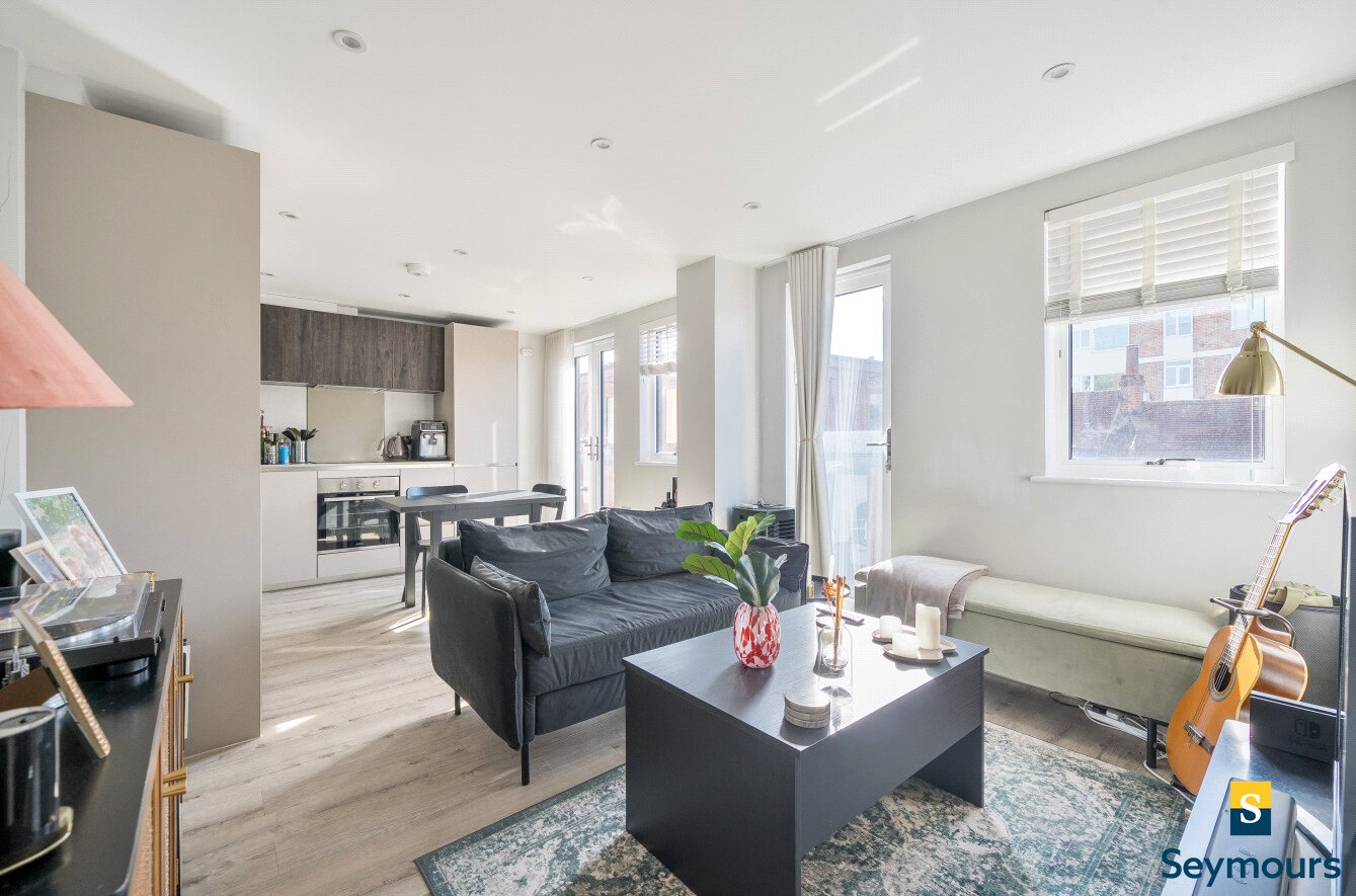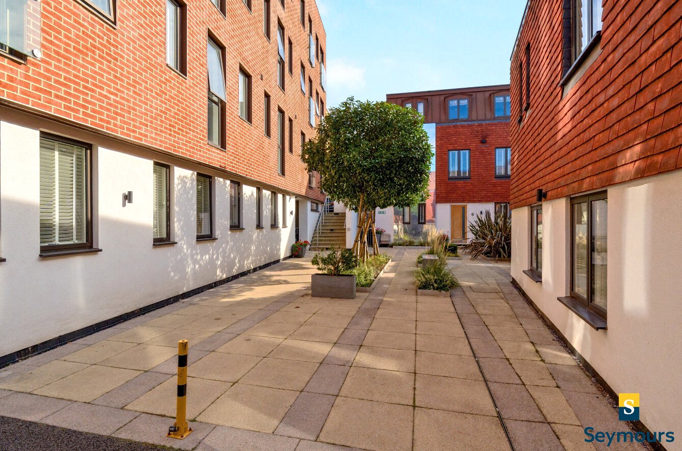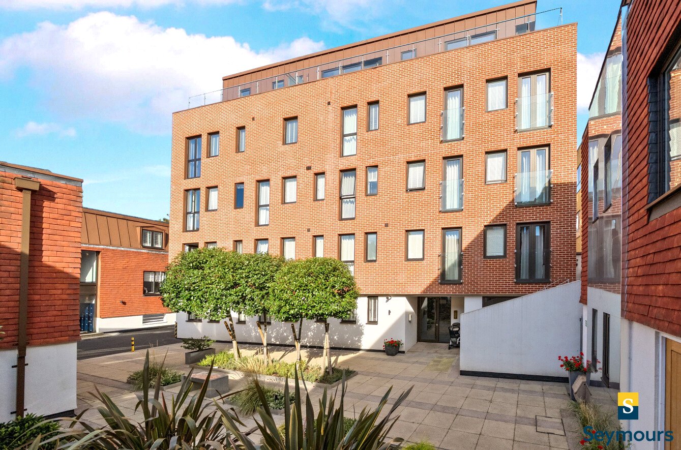 Offered to the market with no onward chain, this high specification two bedroom apartment is located in the heart of Guildford town centre within the popular Scholars Court development. Positioned on the second floor with lift access, the property enjoys a bright and airy aspect, with all rooms overlooking the landscaped central courtyard, as well as expansive views over the town to the green hills across the River Wey.