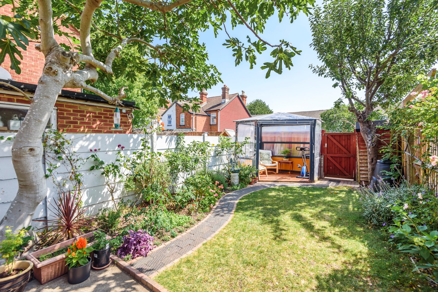 The pretty rear garden is easily maintained mostly laid to lawn with well-stocked flower beds, the path runs up to the sunroom to sit and enjoy the garden, with some shade provided by well-established small trees. There is a gate at the end of the garden with rear access, where there is a parking space that is rented from the council for £53.00 per month.