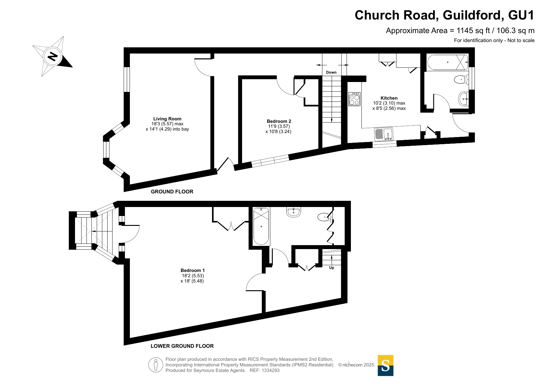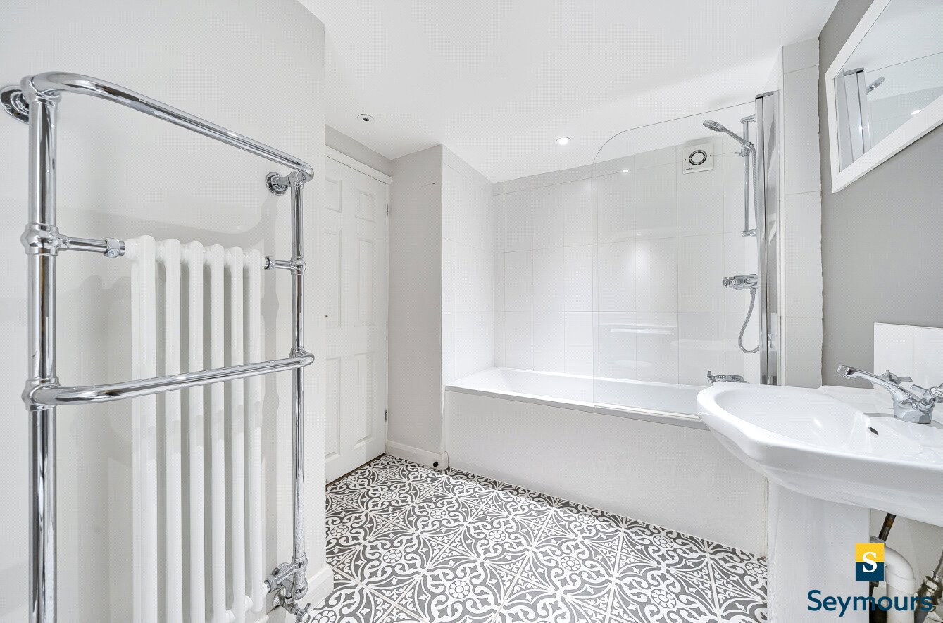 Moving upstairs to the ground floor, you're welcomed into a light and airy living room enhanced by a bay window that draws in plenty of natural light. A sleek and modern kitchen lies to the rear, offering ample workspace and cabinets, complemented by stylish flooring and contemporary finishes. A second double bedroom and an additional well-fitted bathroom are also situated on this level, providing flexibility for guests, family, or home office use.