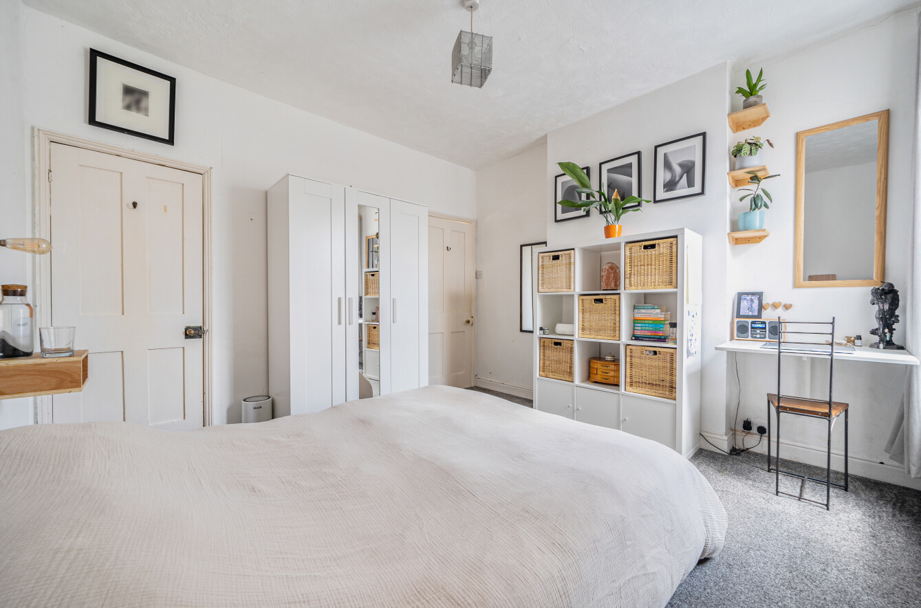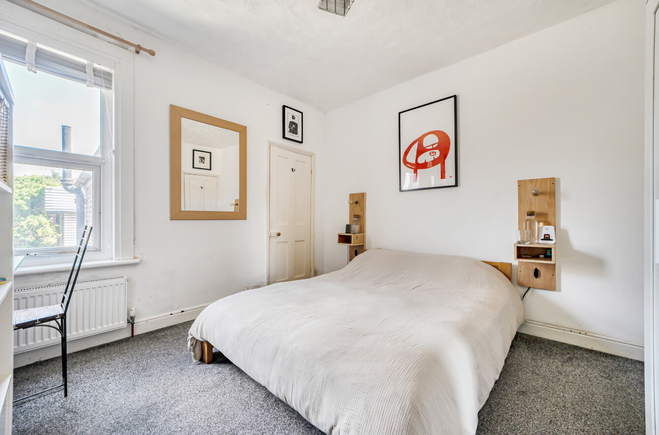 Upstairs, the property boasts two generous double bedrooms with plenty of natural light and space for wardrobes and additional furnishings. The contemporary bathroom is fitted with sleek units and a shower over a modern curved bath and underfloor heating, combining practicality with luxury.