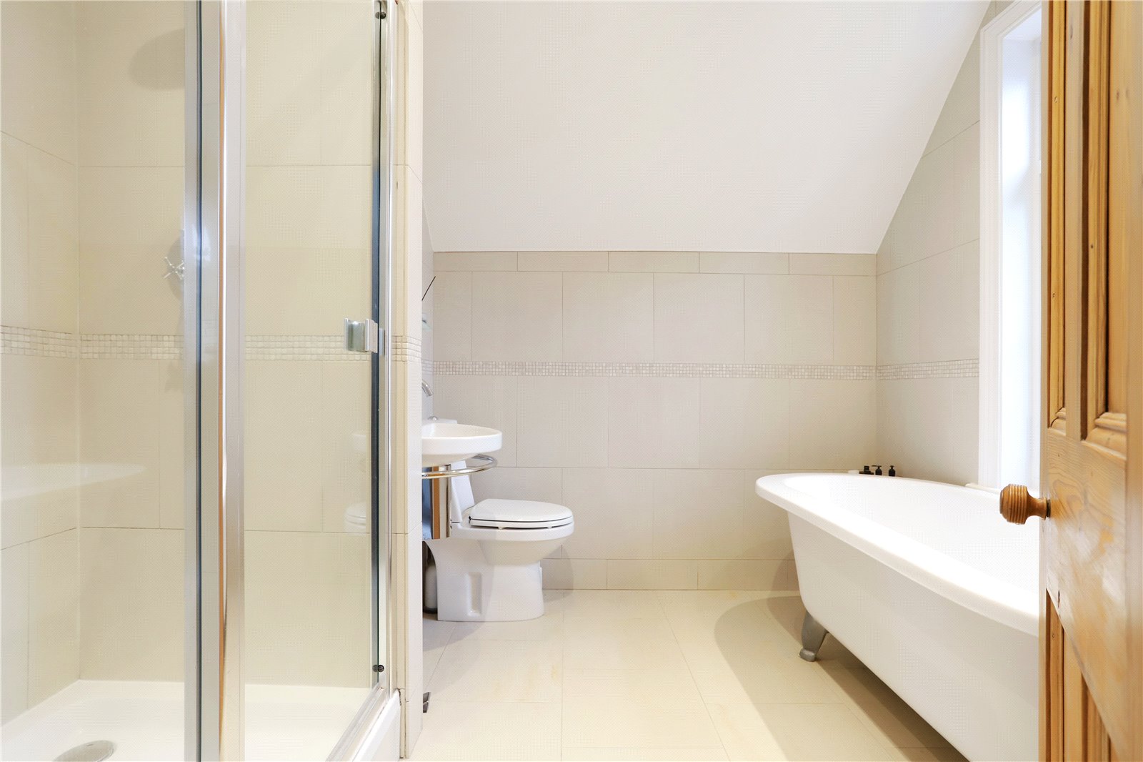 First Floor The first floor provides a spacious principal bedroom with a contemporary en suite bathroom benefitting from a free standing bath and a separate shower. The bedroom also has its own dressing room which could be used as a 6th bedroom.