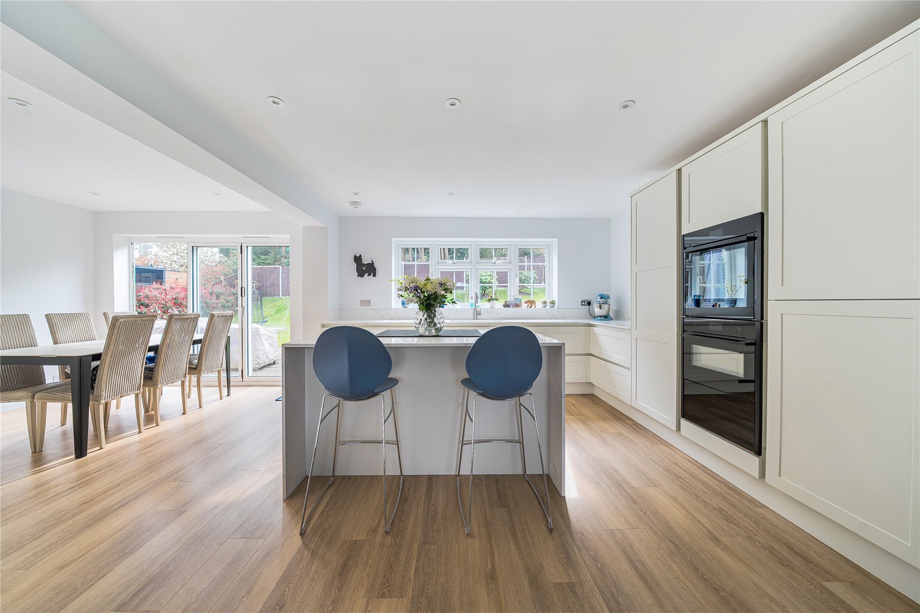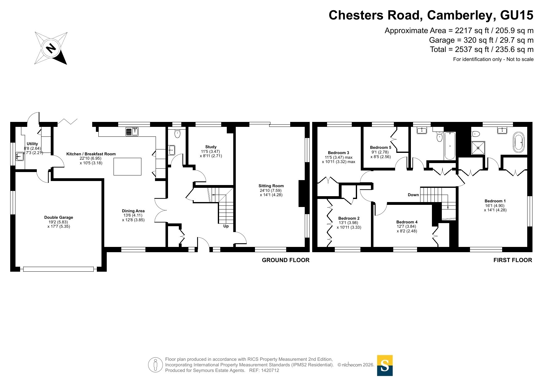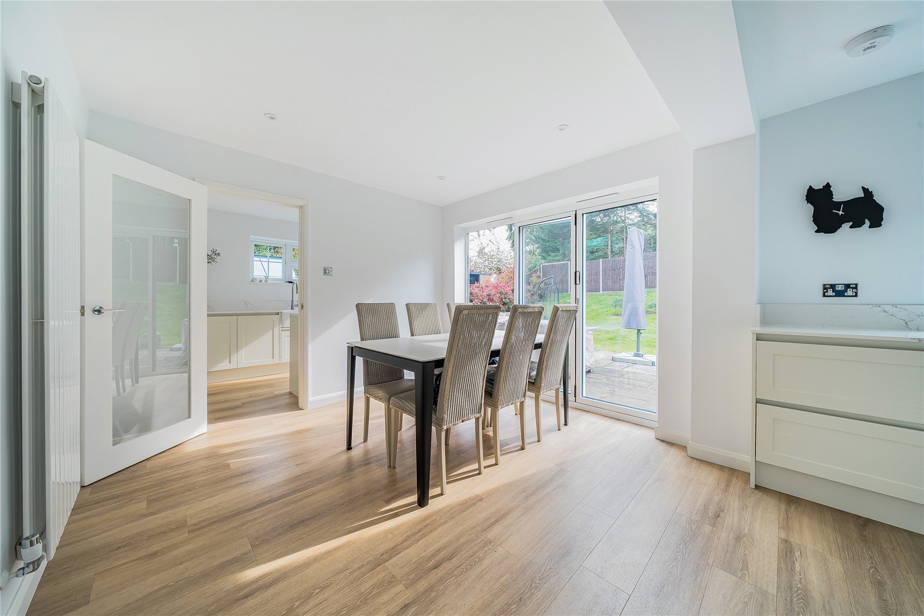 Having undergone a comprehensive and high-quality refurbishment just two years ago, this exceptional five-bedroom detached residence on Chesters Road presents a rare opportunity to acquire a beautifully reimagined family home, finished to an exacting standard throughout.Extending to over 2,500 sq ft including the double garage, the property offers an impressive balance of elegant reception space and practical modern living. The ground floor is thoughtfully arranged, with a striking 24ft sitting room providing a superb setting for both relaxation and entertaining. At the heart of the home lies a stunning open-plan kitchen/dining/living space, creating a seamless flow ideal for contemporary family life. A dedicated study offers an ideal work-from-home space, while a utility room and cloakroom add further convenience.Upstairs, the property continues to impress with five well-proportioned bedrooms. The principal suite is generously sized and served by a stylish en-suite bathroom, while the remaining bedrooms are supported by beautifully appointed family bathroom facilities. Each room has been carefully designed to maximise comfort, light, and functionality.The recent refurbishment has transformed the home, incorporating modern finishes, upgraded fittings, and a cohesive interior design that enhances both aesthetics and practicality throughout.Externally, the property benefits from a substantial double garage and well-maintained gardens, offering excellent outdoor space for entertaining and family enjoyment.Positioned in a highly regarded residential area, Chesters Road is ideally located for access to Camberley town centre, reputable local schools, and excellent transport links, making it particularly appealing for families and commuters alike.This is a turnkey home of genuine quality, combining generous proportions, refined interiors, and a prime Surrey location.