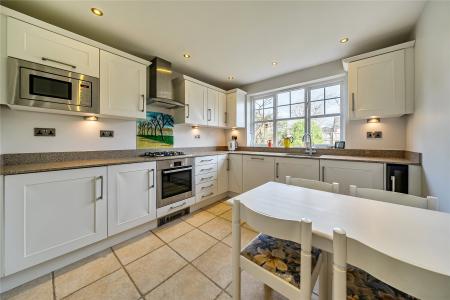 To the front aspect, the dining room benefits from a pleasant outlook over the front garden and the open playing field opposite, providing a wonderful sense of space.