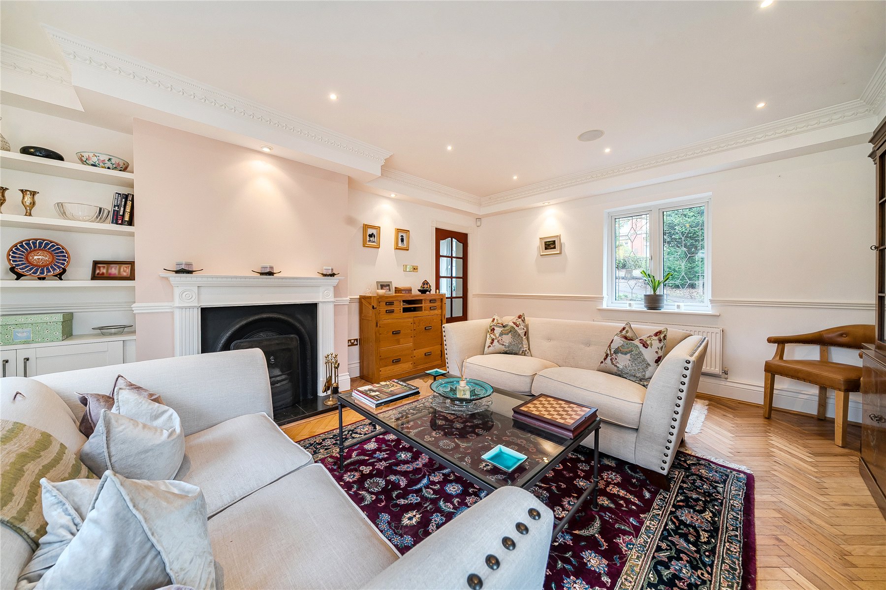 Natural light filters through from the adjoining rooms, enhancing the airy atmosphere and creating a wonderful first impression. The thoughtful layout seamlessly connects the principal reception spaces, allowing for effortless entertaining while remaining perfectly suited to everyday family life.