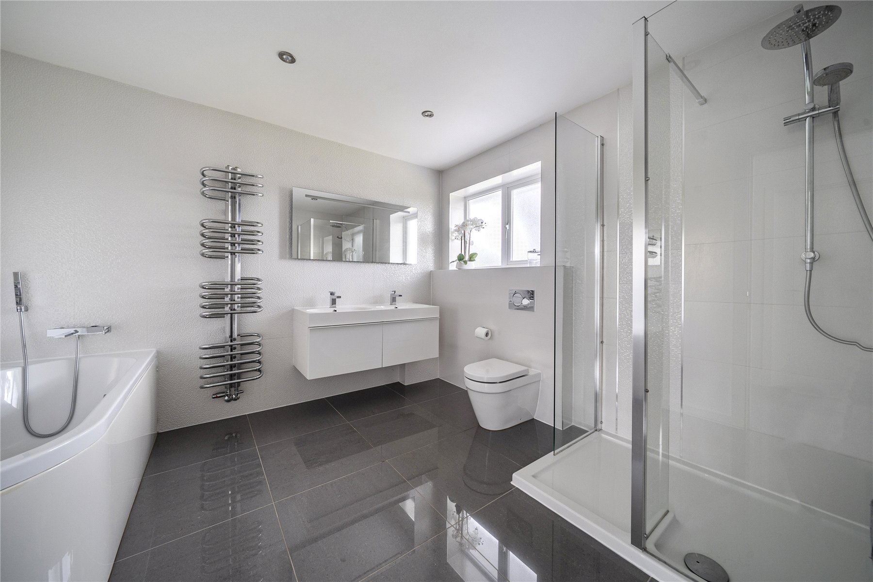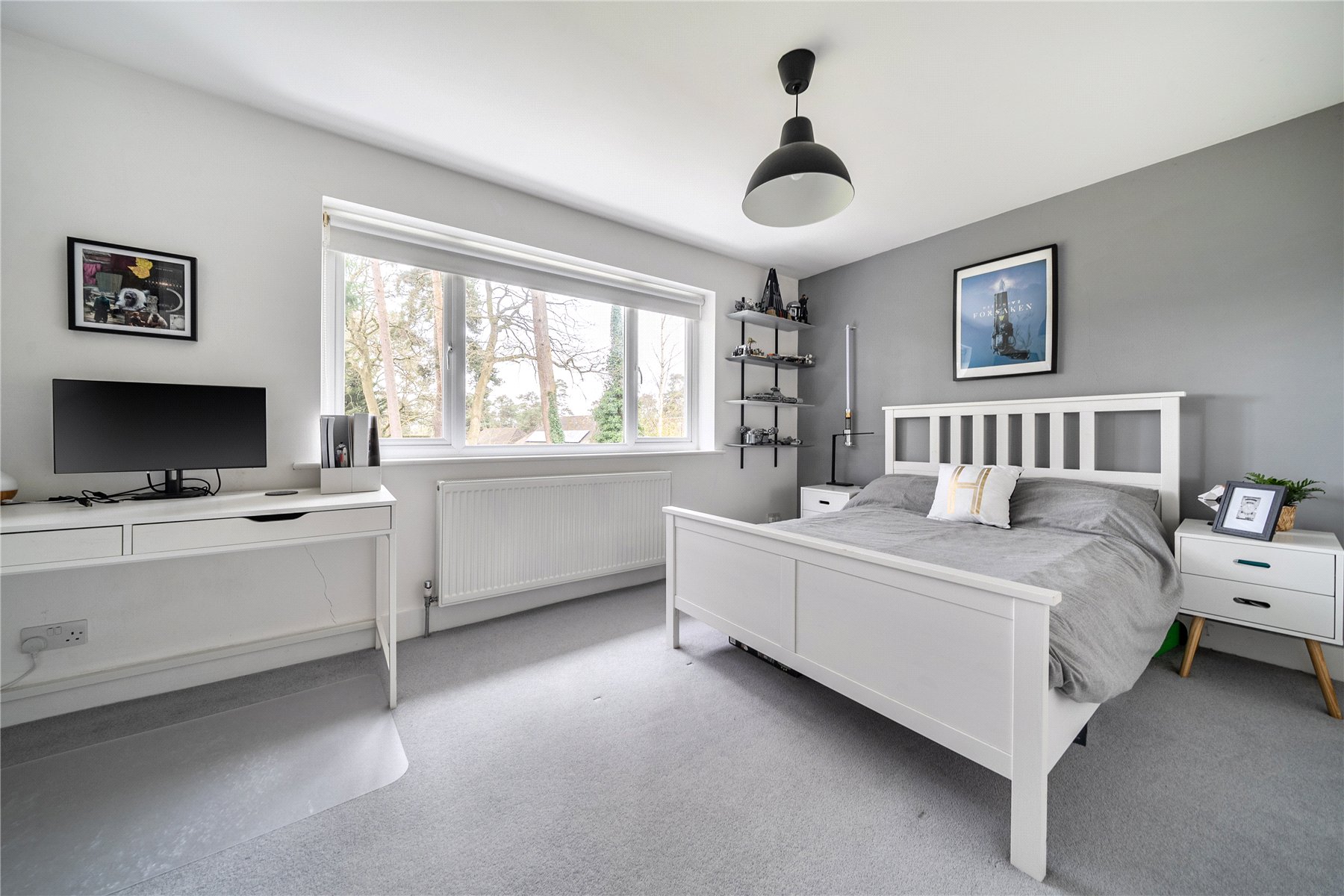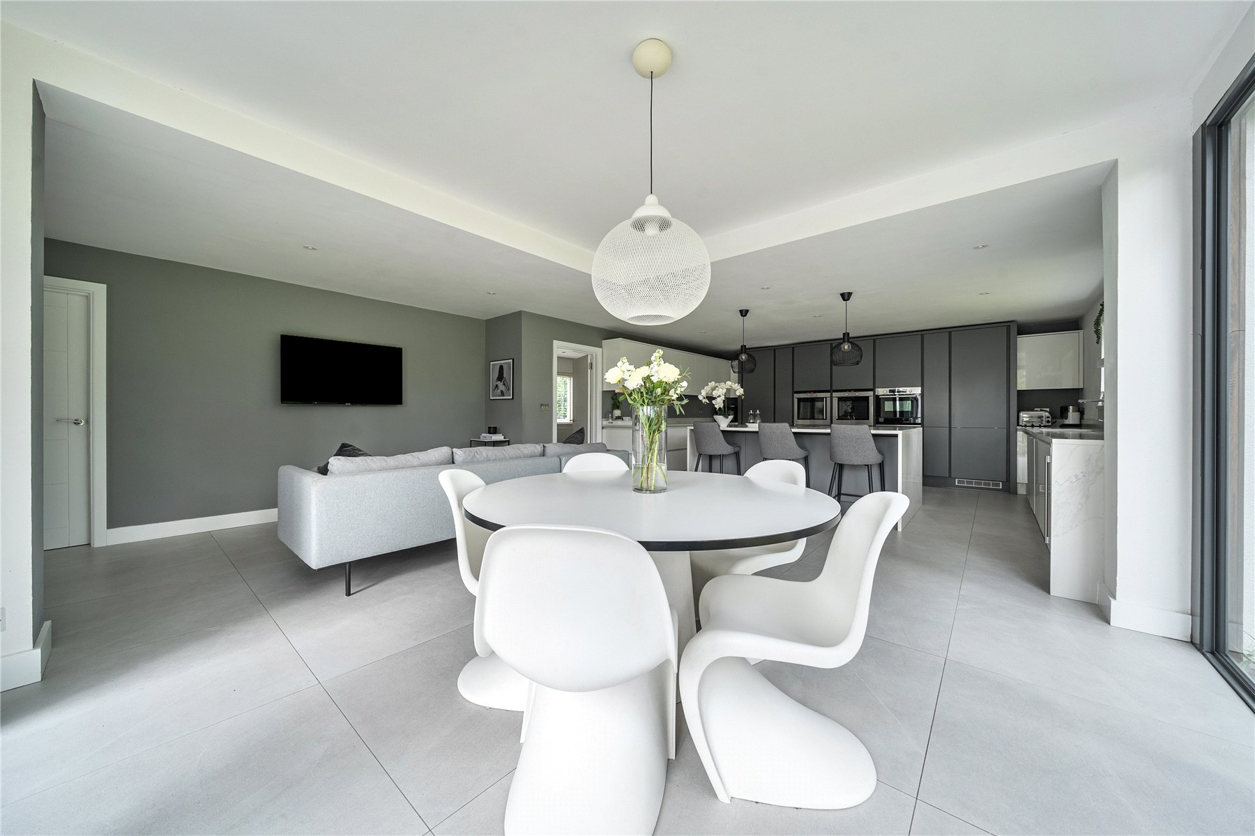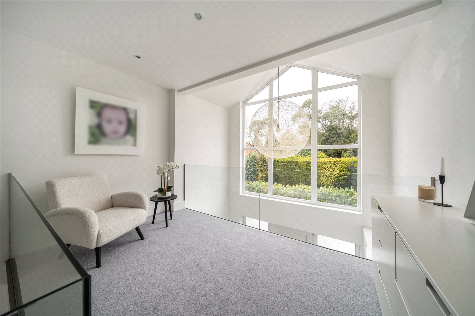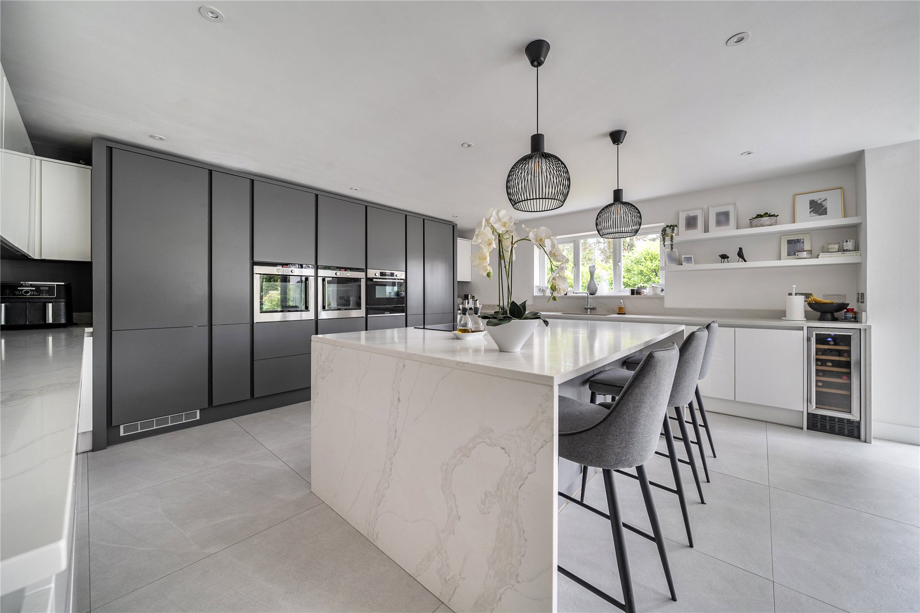 Set discreetly along one of Camberley's most prestigious roads, this exceptional detached residence represents a masterclass in contemporary family livingwhere architectural elegance, scale and refined design converge.Extending to over 4,000 sq ft, the home has been meticulously reimagined to an exacting standard, with an emphasis on light, flow and sophisticated detailing throughout. At its centrepiece lies a truly outstanding open-plan kitchen and lifestyle spacea beautifully appointed environment featuring bespoke cabinetry, high-specification integrated Bosch and Siemens appliances, and an expansive statement island. Designed for both grand entertaining and everyday living, this space opens seamlessly onto the terrace, blurring the boundary between indoors and out. Underfloor water heating enhances comfort within the kitchen and breakfast areas, while engineered oak flooring flows throughout the entirety of the ground floor, adding warmth and cohesion.The ground floor offers an exceptional level of versatility, with a series of impeccably presented reception rooms including a formal dining room, an elegant drawing room, and a relaxed family room. A dedicated home office provides a quiet and refined workspace, while a well-appointed utility room and integrated double garage ensure practicality is effortlessly catered for.The first floor continues to impress, arranged around a striking galleried landing, where a dramatic feature window bathes the interior in natural light. The principal suite is a sanctuary of calm, complete with a beautifully designed dressing room and a luxurious en-suite bathroom. Four further generously proportioned bedrooms are complemented by stylish bath and shower rooms, all finished with a cohesive and contemporary aesthetic.Externally, the property enjoys a beautifully established, south-facing garden, offering a rare degree of privacy and seclusion. Mature trees and manicured hedging frame a generous lawn and an elegant terraceperfect for outdoor entertaining and summer dining. A detached garden cabin provides a highly versatile space, ideal as a gym, studio or secondary office. To the front, a sweeping driveway provides extensive parking and enhances the home's impressive approach.Positioned within easy reach of Camberley's vibrant town centre, the property enjoys immediate access to an array of fine dining, boutique shopping and leisure facilities, including the renowned Atrium complex. The location is particularly favoured for its proximity to a number of highly regarded state and independent schools, as well as excellent transport links. Camberley station offers direct connections to London, while the nearby A30 and M3 provide swift access to Heathrow Airport and the wider motorway network. Surrounded by picturesque woodland, championship golf courses and exclusive private clubs, this is a location that delivers both lifestyle and convenience in equal measure.