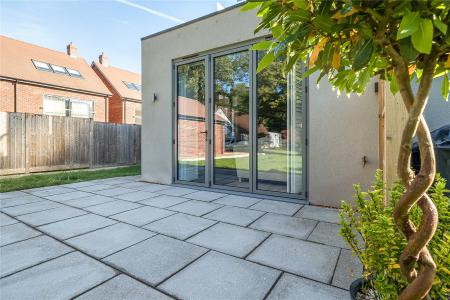 The impressive open-plan kitchen and living space, extending to approximately 27' forms the heart of the home and offers a superb setting for both entertaining and everyday living. The generous proportions allow for clearly defined seating and dining areas, while the kitchen is seamlessly integrated to maintain a sleek, contemporary aesthetic.