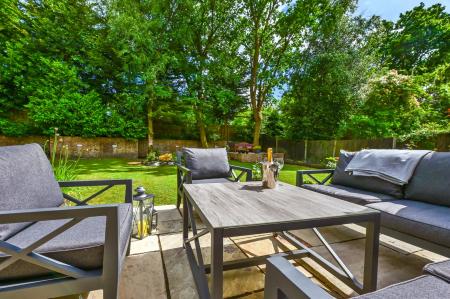 Outside, the property offers a desirable southerly aspect, with a vast patio area, accessed from the living room and utility room, to provide an ideal area for entertaining. In addition, the beautifully well-maintained private garden is a particular feature.