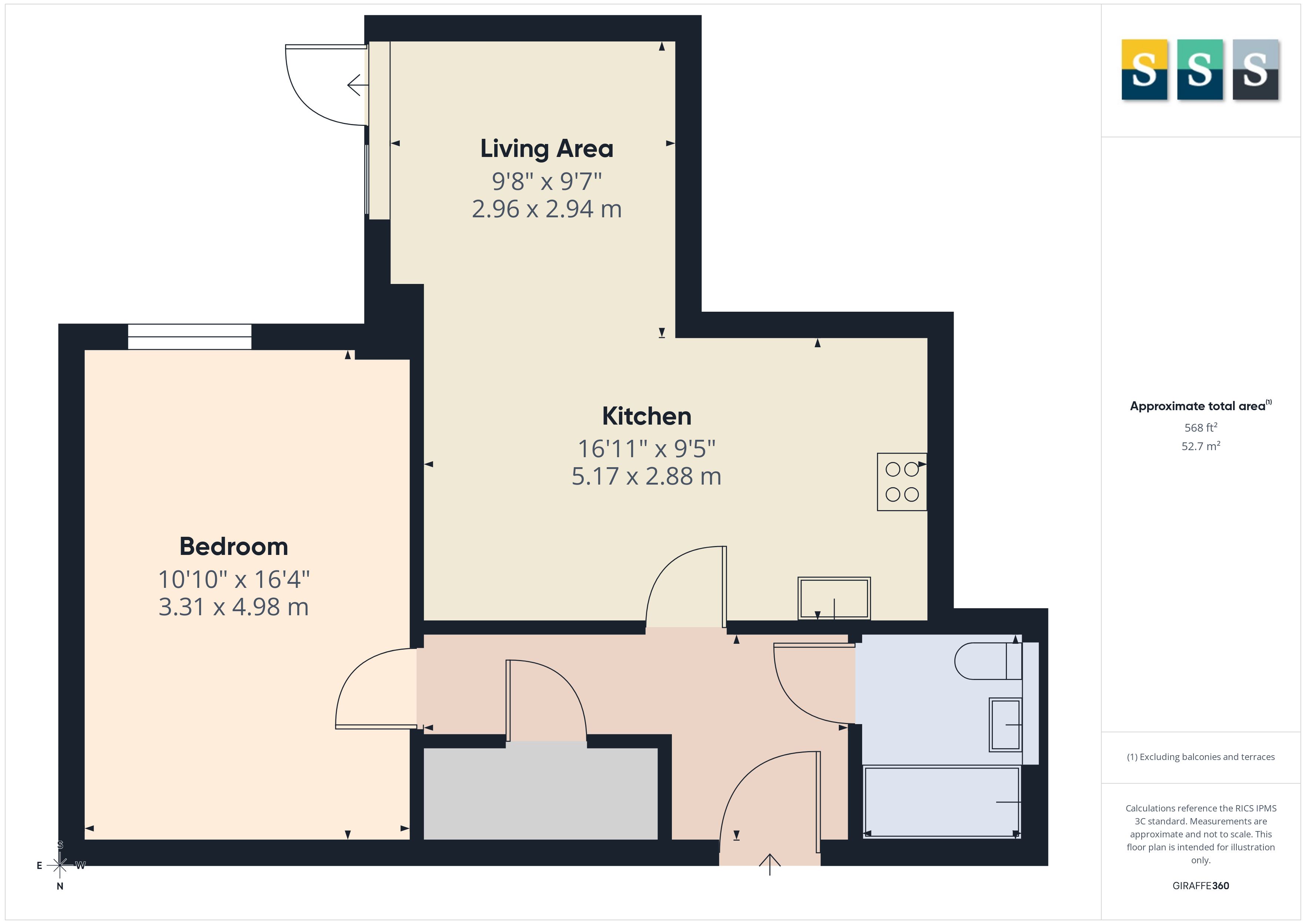 The generous double bedroom measures over 16' and provides ample space for freestanding or fitted wardrobes. A modern three-piece bathroom completes the accommodation.