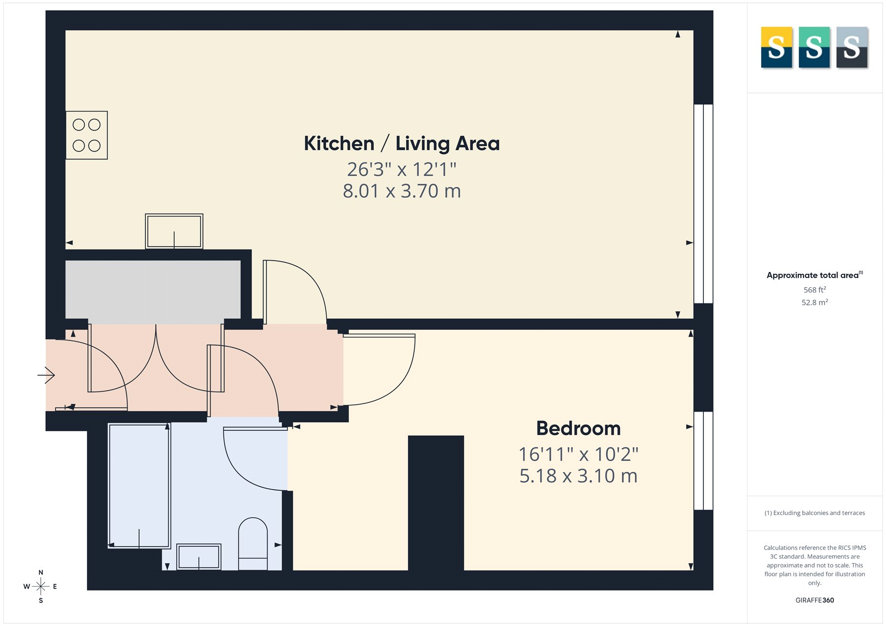 This beautifully presented property offers modern open-plan living, perfectly suited to first-time buyers, investors or professionals seeking convenience and comfort. The bright and spacious kitchen/living area features a sleek, fully fitted kitchen with integrated appliances and ample storage, flowing seamlessly into a versatile living space with room for both dining and relaxation.