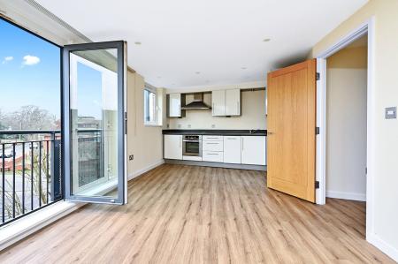 The property comprises of two good sized double bedrooms, the master bedroom benefitting from a built-in wardrobe and en-suite shower. Additionally, there is a modern family bathroom, and a spacious kitchen/living/dining room which offers access to the property's balcony.