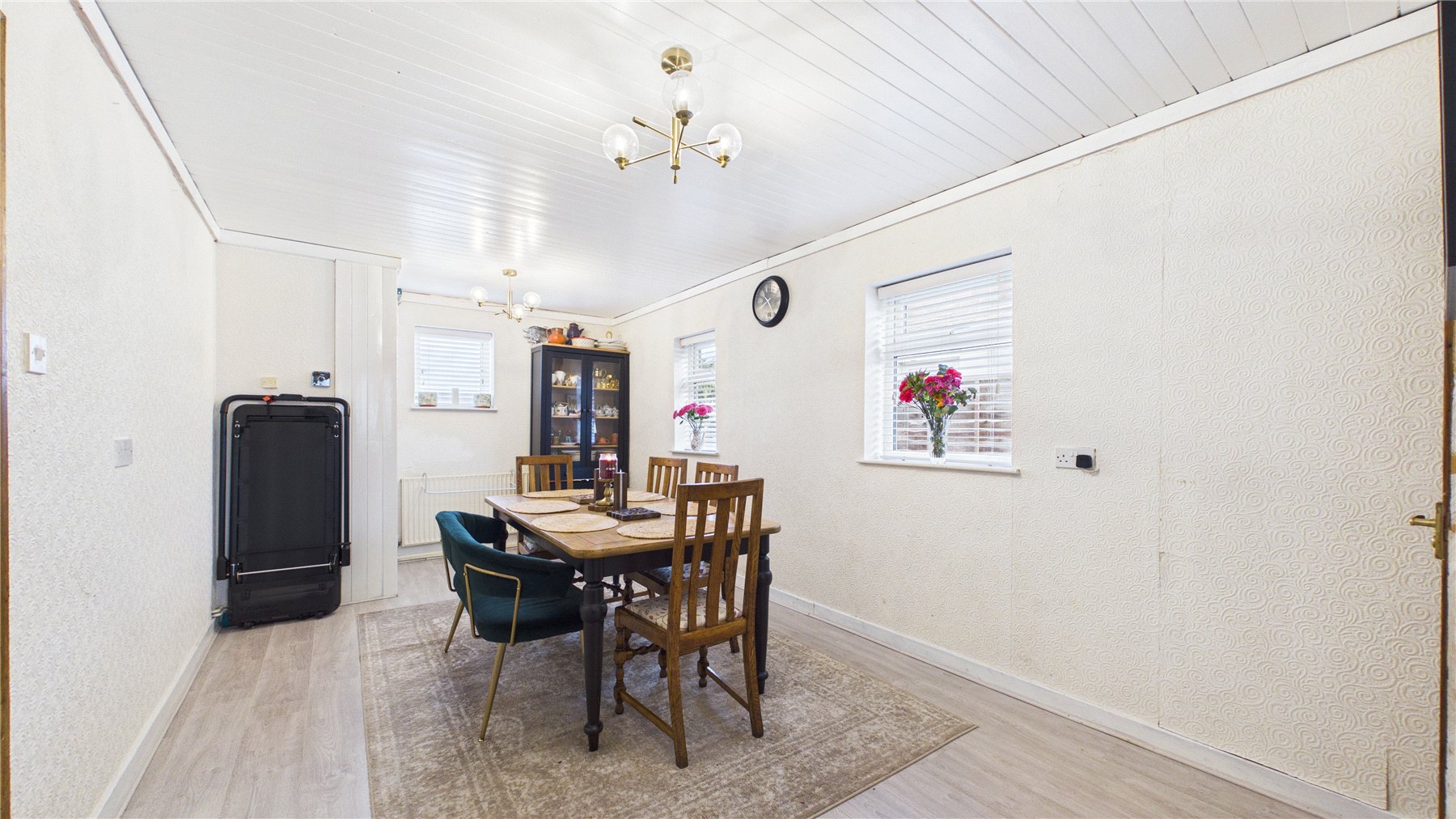 To the rear, a substantial dining room offers an ideal environment for formal dinners and everyday meals alike, with a layout that naturally lends itself to entertaining and larger social occasions.