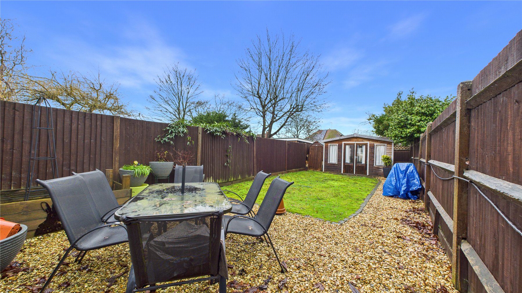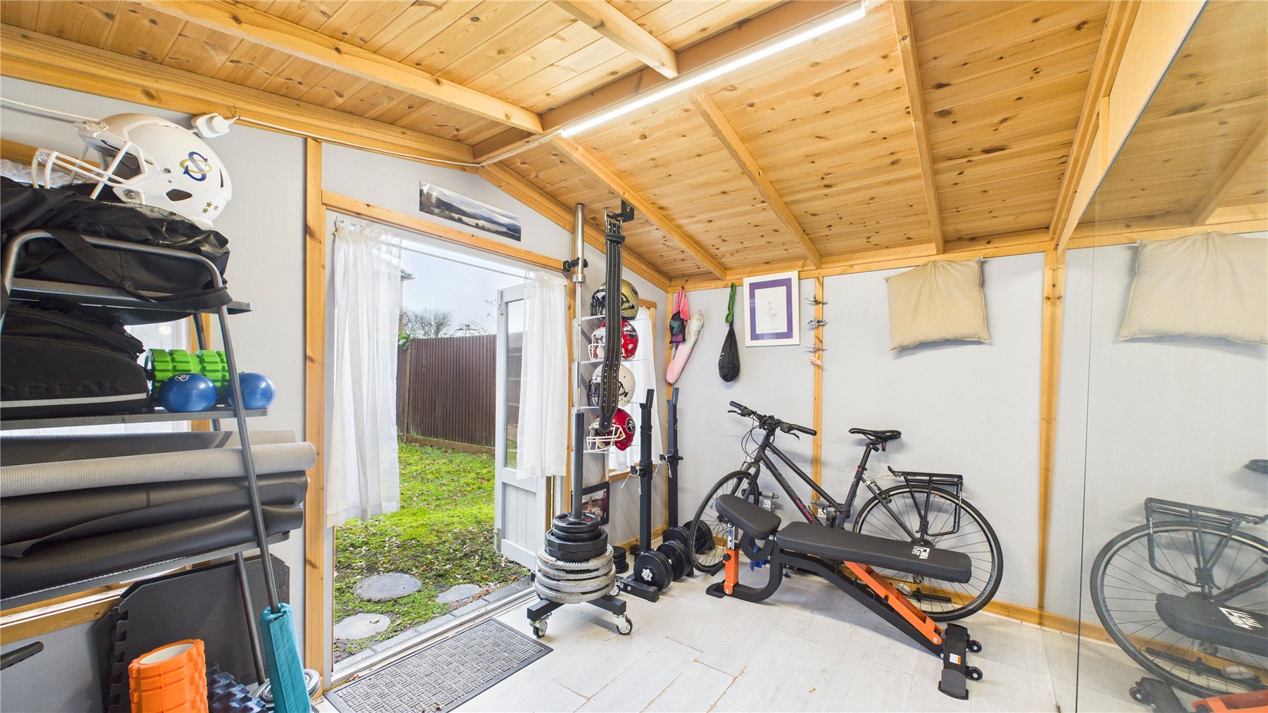 Externally, the property benefits from a private rear garden, providing a pleasant outdoor space for relaxing, entertaining or enjoying the warmer months. At the end of the garden sits a log cabin, offering an excellent opportunity for a home office, studio or hobby room.
