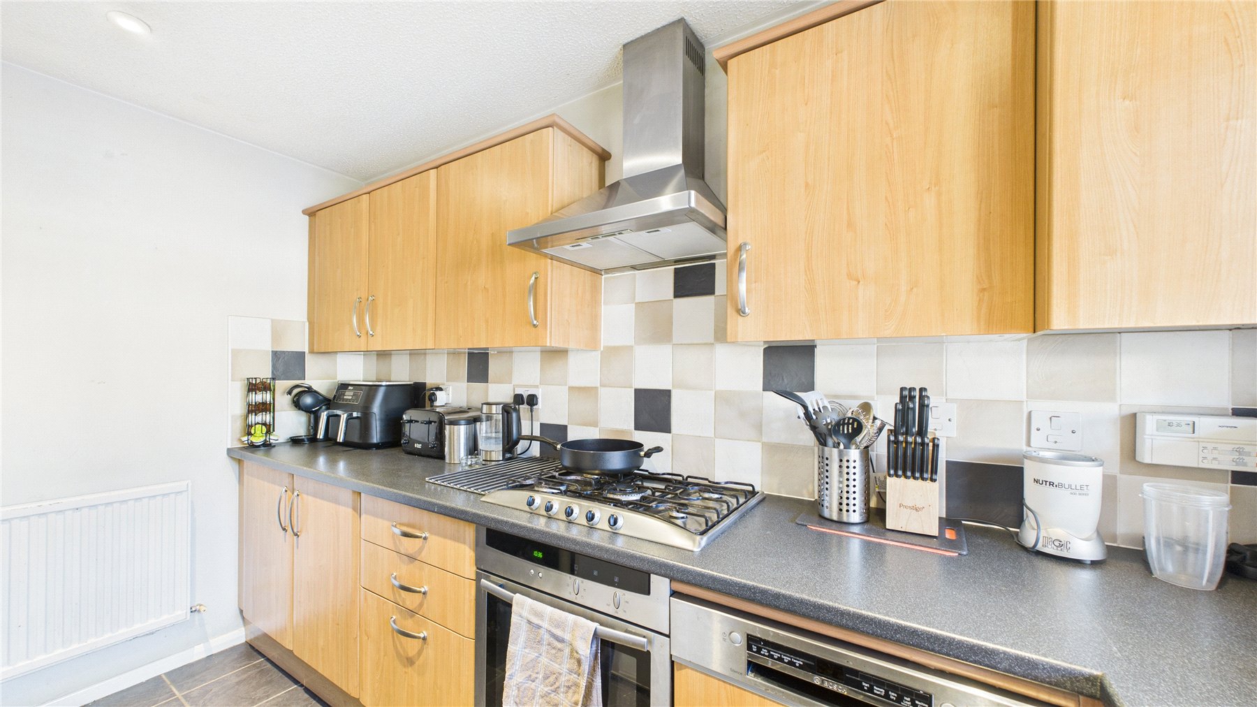The separate kitchen is fitted with a range of eye and base level units and there is space for a breakfast table.