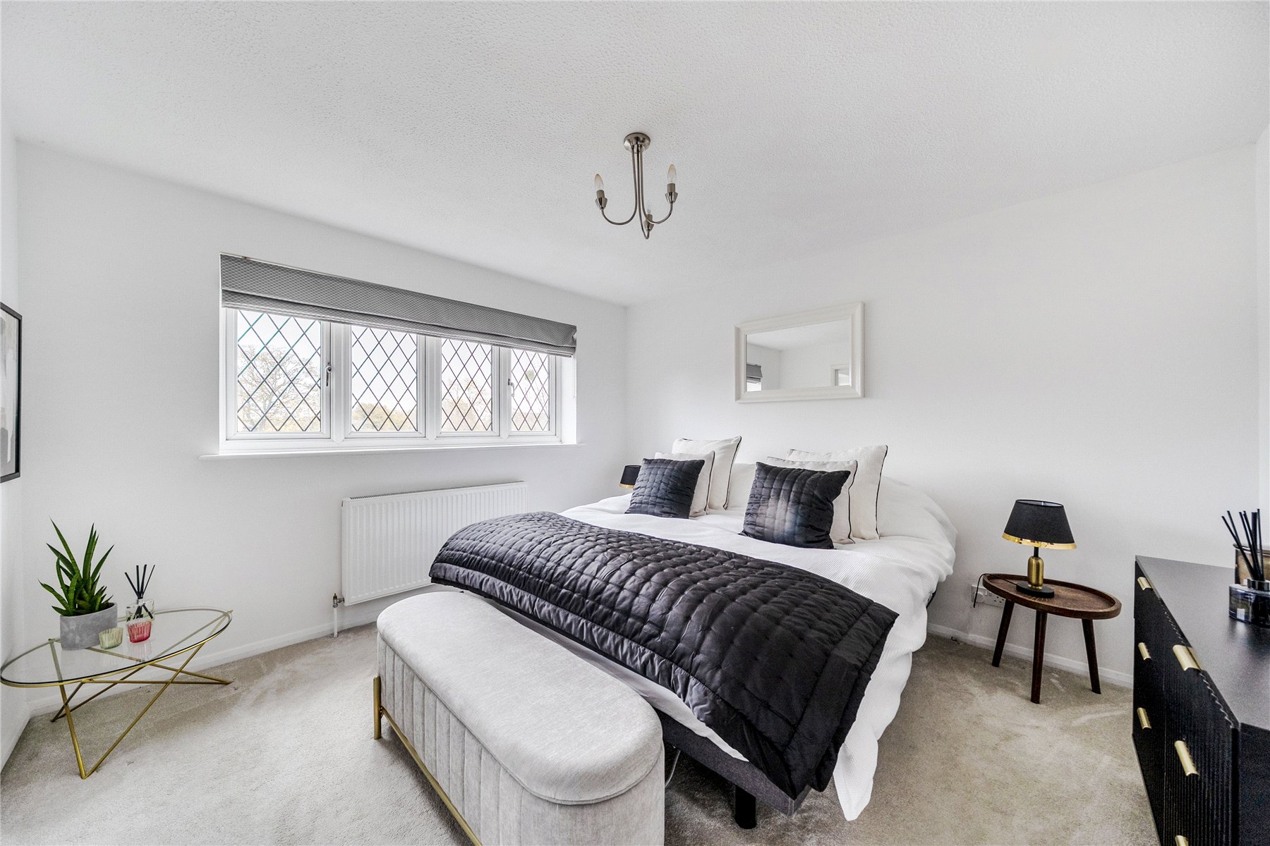 Upstairs, the property offers six well-proportioned bedrooms, making it perfect for larger families or those seeking versatile home office space. The principal bedroom benefits from built-in wardrobes and a stylish en-suite. The remaining bedrooms are served by a contemporary family bathroom with modern fittings and a neutral palette.
