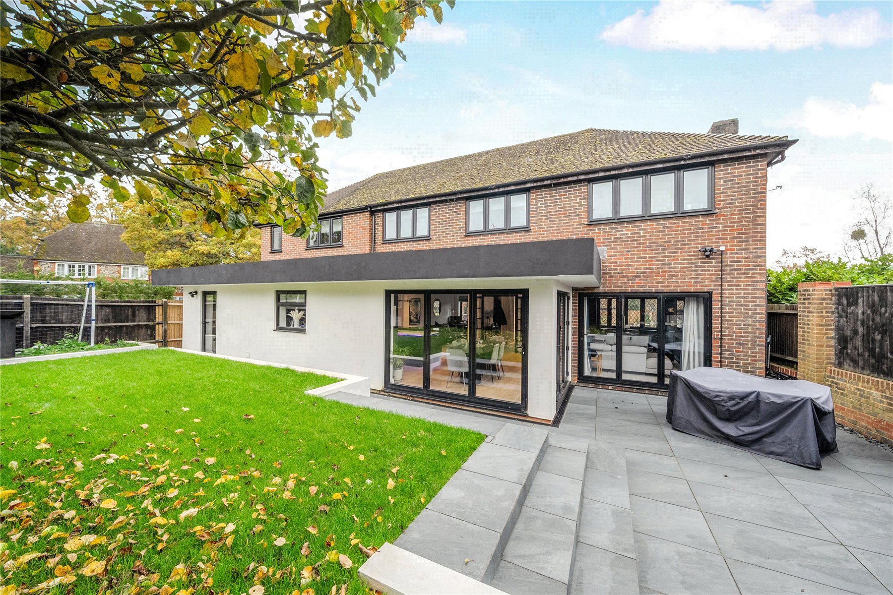 Situated on one of Lightwater's most desirable roads, this exceptional six-bedroom detached family home has been thoughtfully modernised throughout, blending contemporary design with practical family living. The property boasts over 2,200 sq. ft. of stylish accommodation, including a stunning open-plan kitchen/dining/living space, luxurious interiors, and a beautifully landscaped rear garden.