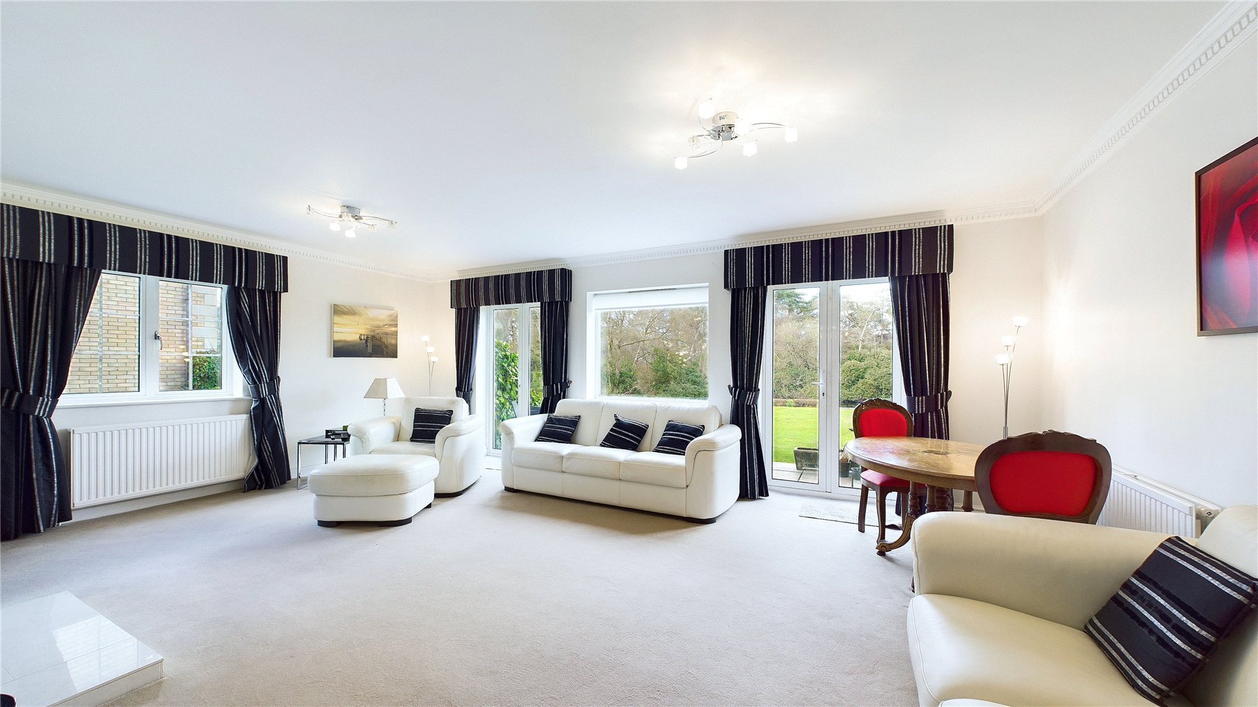 This rarely available property offers stunning views over a scenic private lake, and surrounding woodland, which is directly accessed by private patio doors from the sitting room.