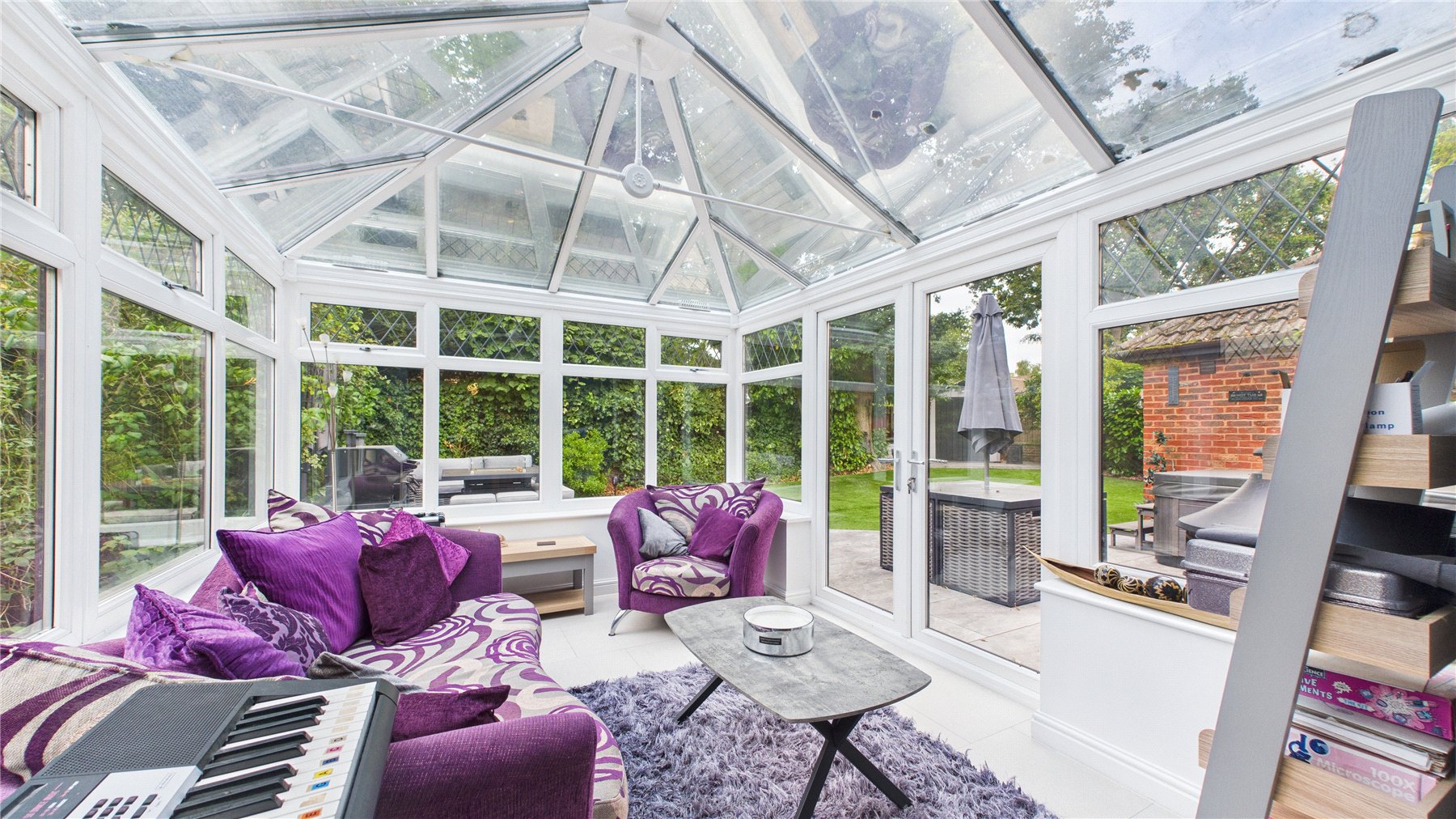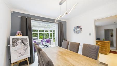Upon entering, you are greeted by a spacious and welcoming entrance hall. To the front of the property is a generous sitting room that centres around the fireplace and also opens into the dining room. The dining room also flows seamlessly into the conservatory, which floods the area with natural light, providing a seamless transition to the landscaped rear garden.