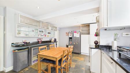 To the rear of the property, the extended kitchen / dining room boast a range of eye and base level storage units, fitted appliances, and granite work surfaces.