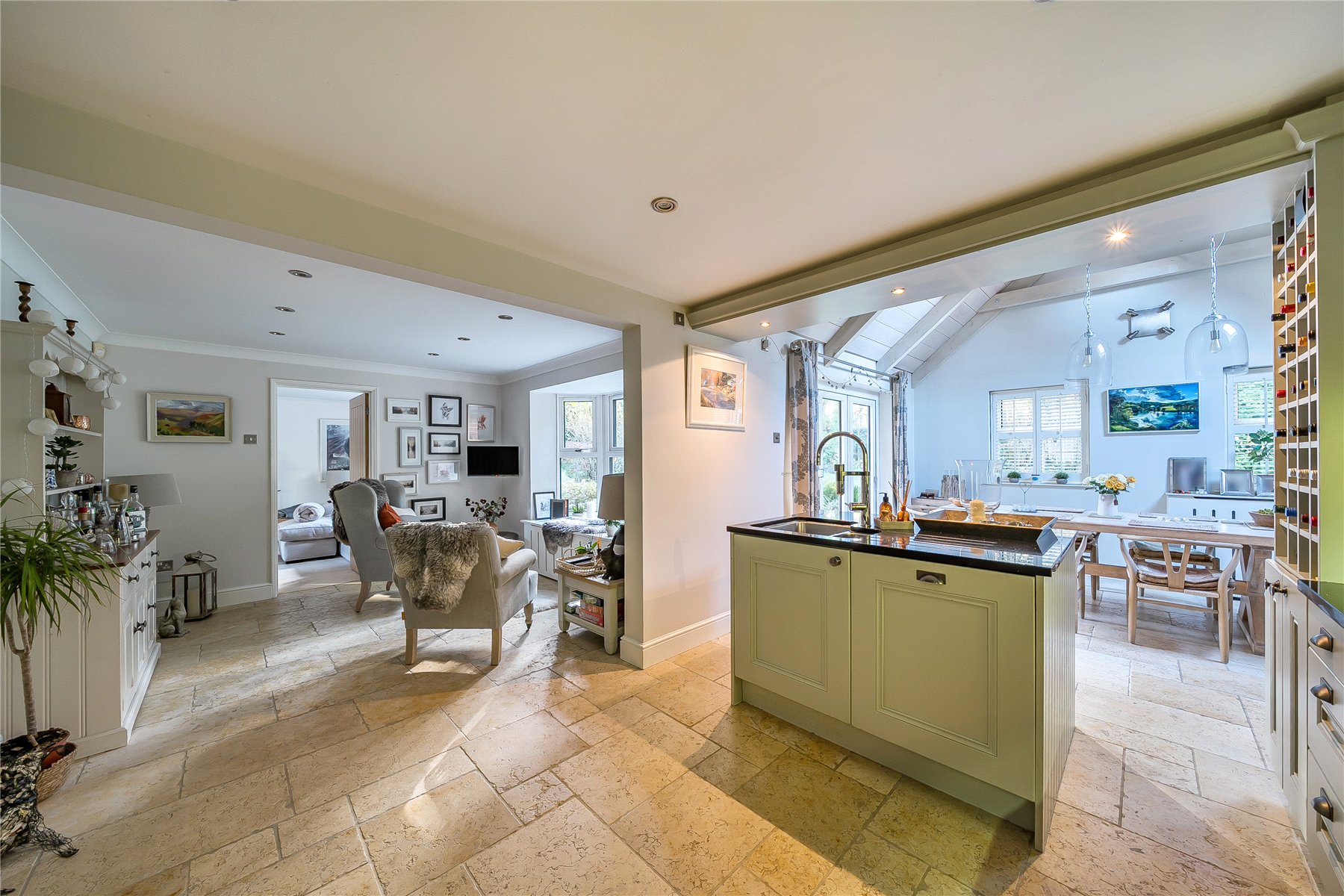 Triple glazing and underfloor heating serving the kitchen, dining room, studio and en-suite add a notable level of comfort and modern efficiency.