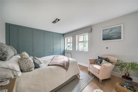 Head upstairs, where you will find four generous bedrooms, including a superb 21' principal bedroom with a newly fitted en-suite featuring sanitaryware from Victoria and Albert. Bedrooms two and three are excellent doubles, while bedroom four is a comfortable single, and a family bathroom completes the first floor.