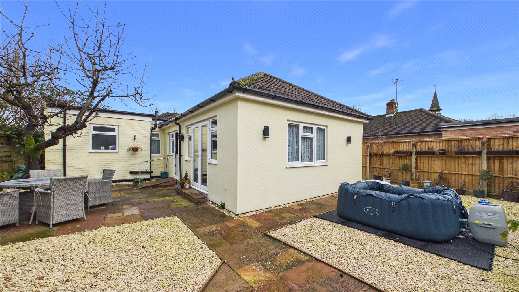 Centrally located in popular Lightwater Village, this two bedroom detached bungalow offers versatile accommodation within easy reach of all local amenities. No onward chain.