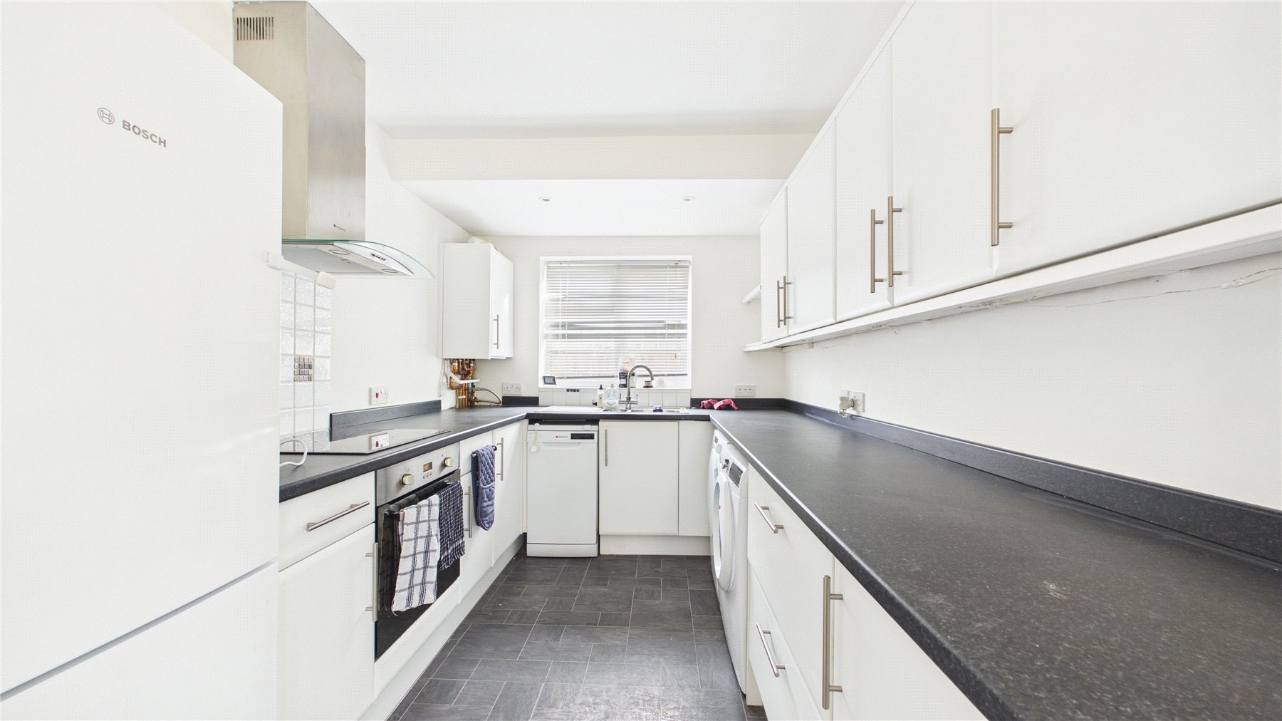 The living room enjoys views of the garden and opens to the modern kitchen/breakfast room with a breakfast bar. The bathroom is also presented in good condition.