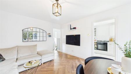 Entering via your own side entrance, the Herringbone flooring leads you through to the rear facing reception room. Opening to the modern fitted kitchen, you will find grey shaker-style units, square-edged worktops, and space for appliances.