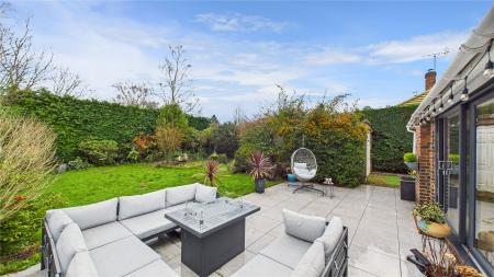 To the rear, the private garden is enclosed by mature hedged boarders, and mainly laid to lawn with a generous and recently laid patio area, providing a perfect spot to enjoy the summer sun.