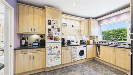 The kitchen/breakfast is fitted with a range of eye and base level units, integrated appliances, and granite worktops. There is direct access out to the carport area and garage. The ground floor further benefits from a guest cloakroom and understairs storage.