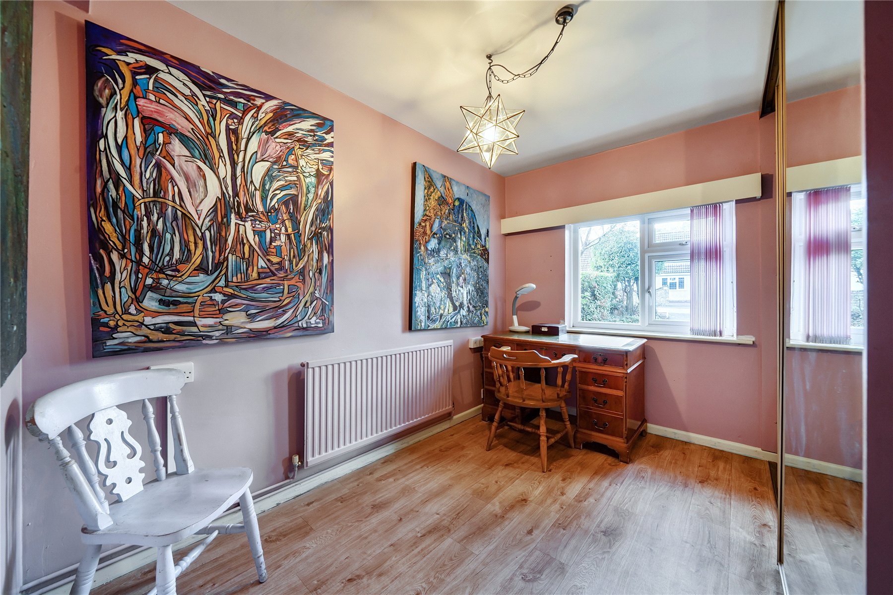 On the first floor, the property offers three well-sized bedrooms, including a generous principal bedroom and a second double bedroom, both benefiting from built-in storage. The third bedroom is ideal as a child's room, or study. A family bathroom, and separate w/c completes the upstairs accommodation.